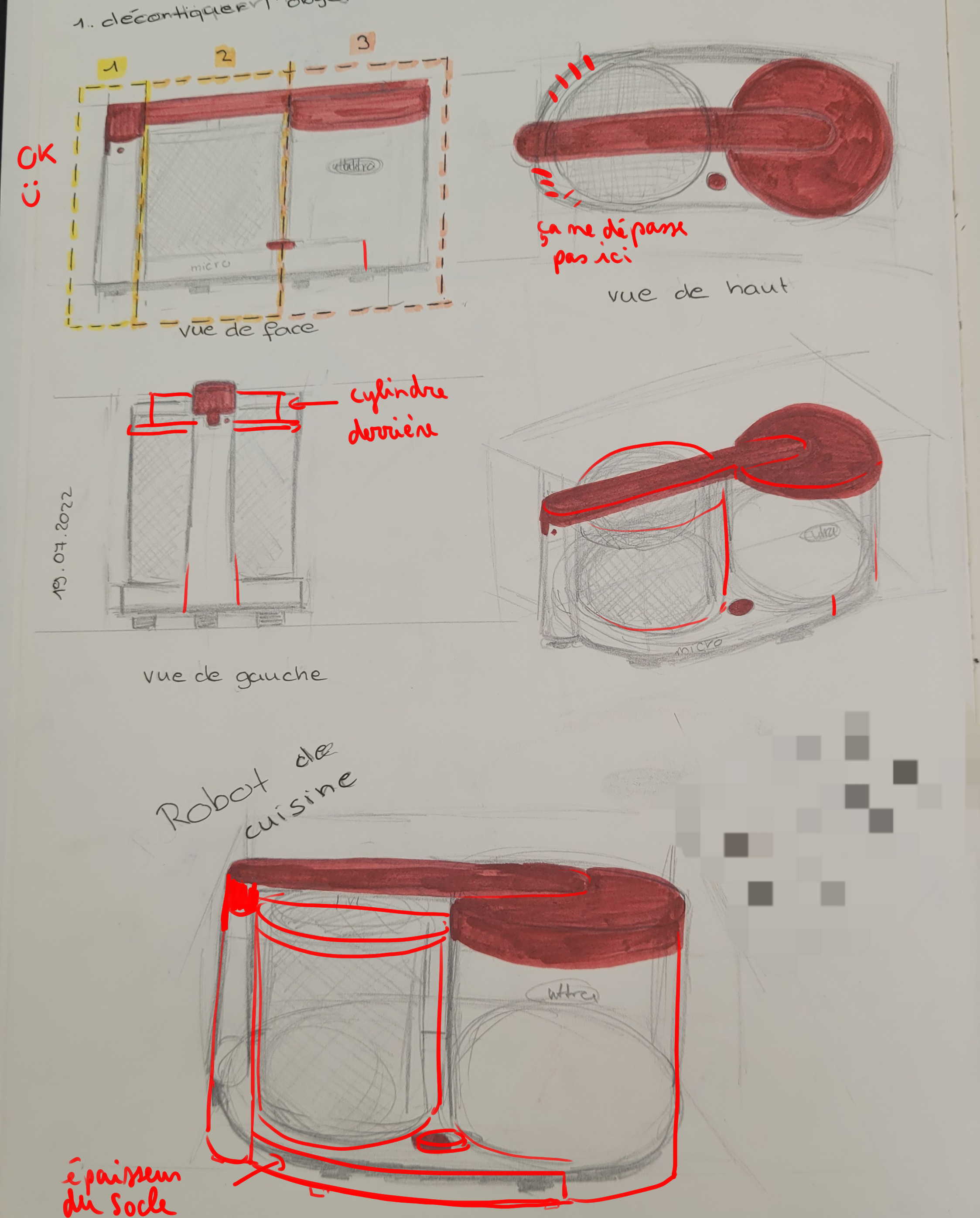 Bonjour Nordael, Tu as bien réussi l'exercice globalement tu as compris l'objet bravo :) Ta vue de 3/4 est particulièrement réussie ! Voici quelques petites corrections. Tu as un peu eu tendence à disloquer certains éléments ^^