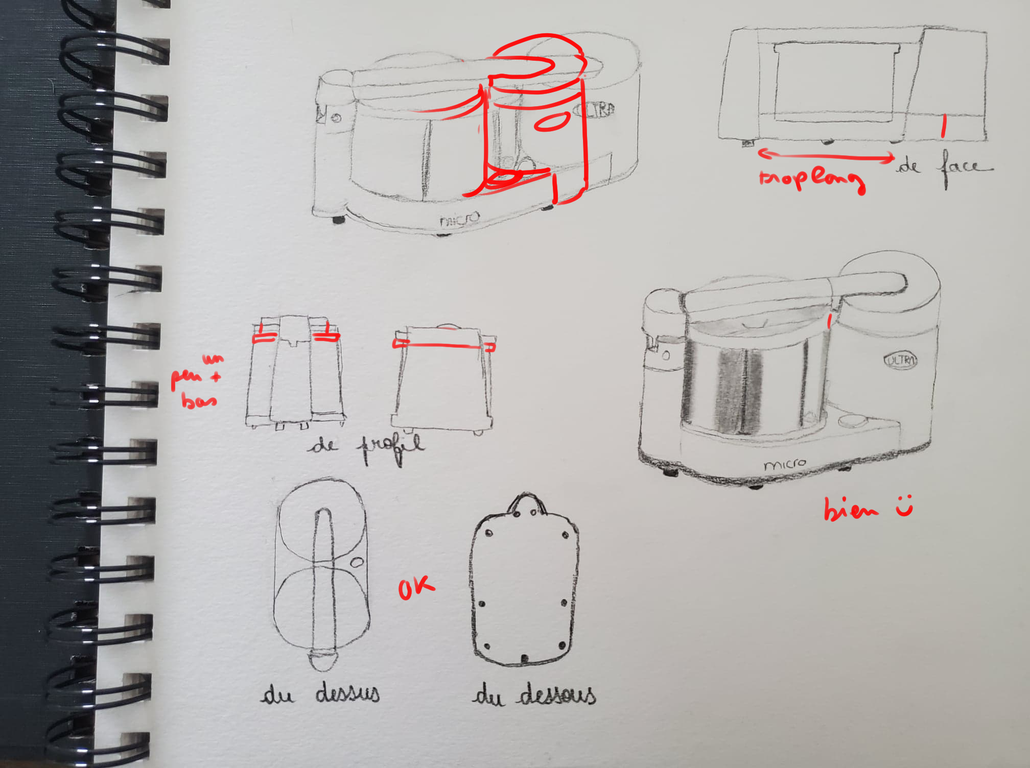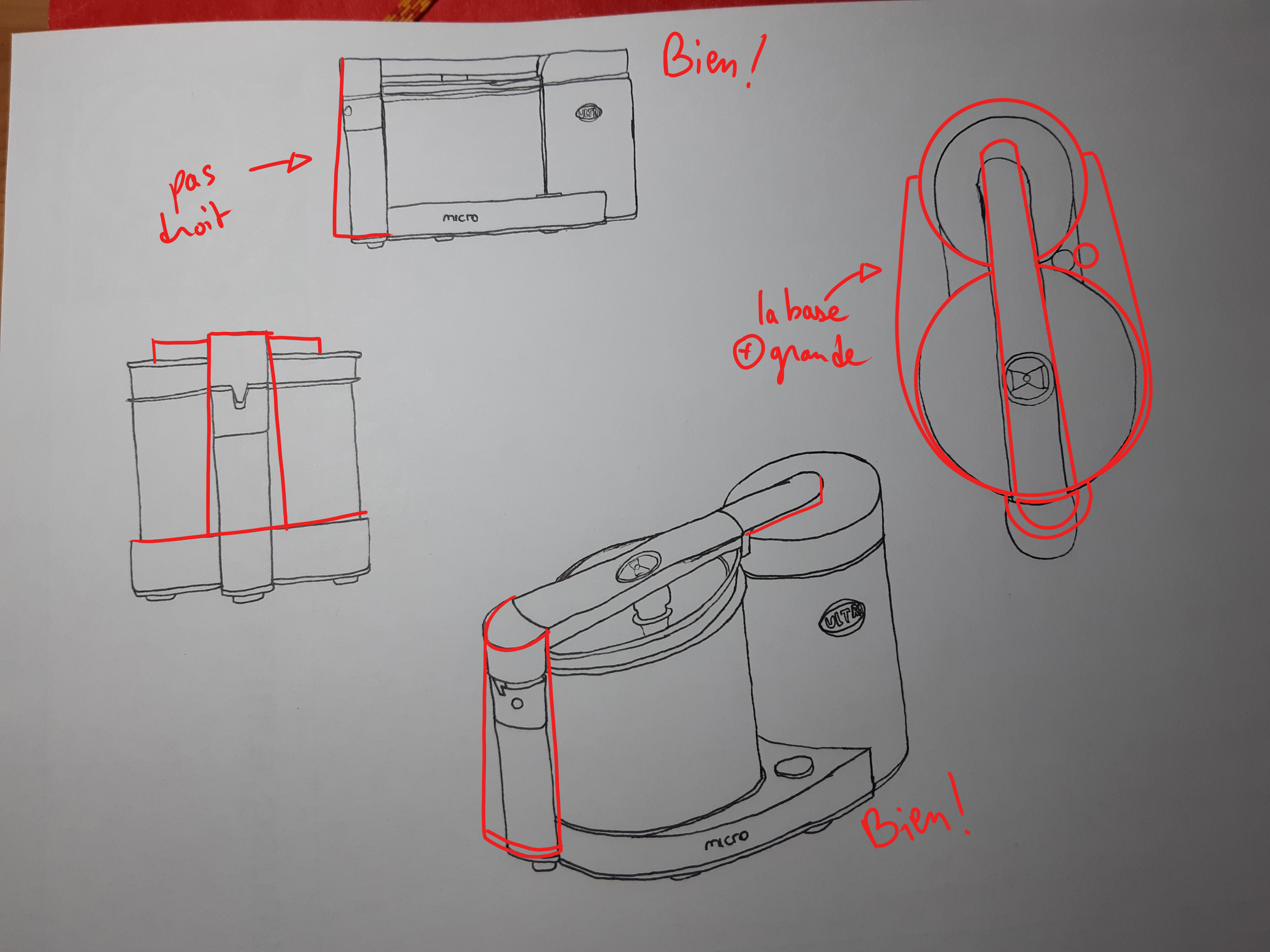 Bonjour Alane, tu as globalement bien compris l'objet, cependant tu as encore quelques soucis de proportions. Voici ma correction dessinée :)