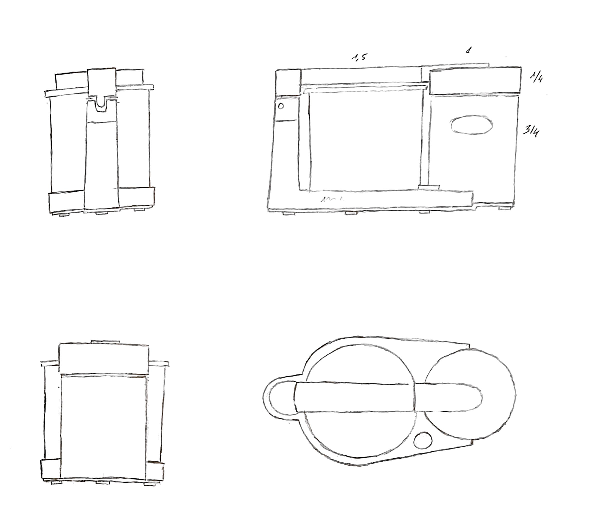 Bonjour, voici mes dessins du robot vu de dessus, de face, de chaque côté et de coté un peu en hauteur comme sur la photo initiale. Merci par avance pour vos commentaires.