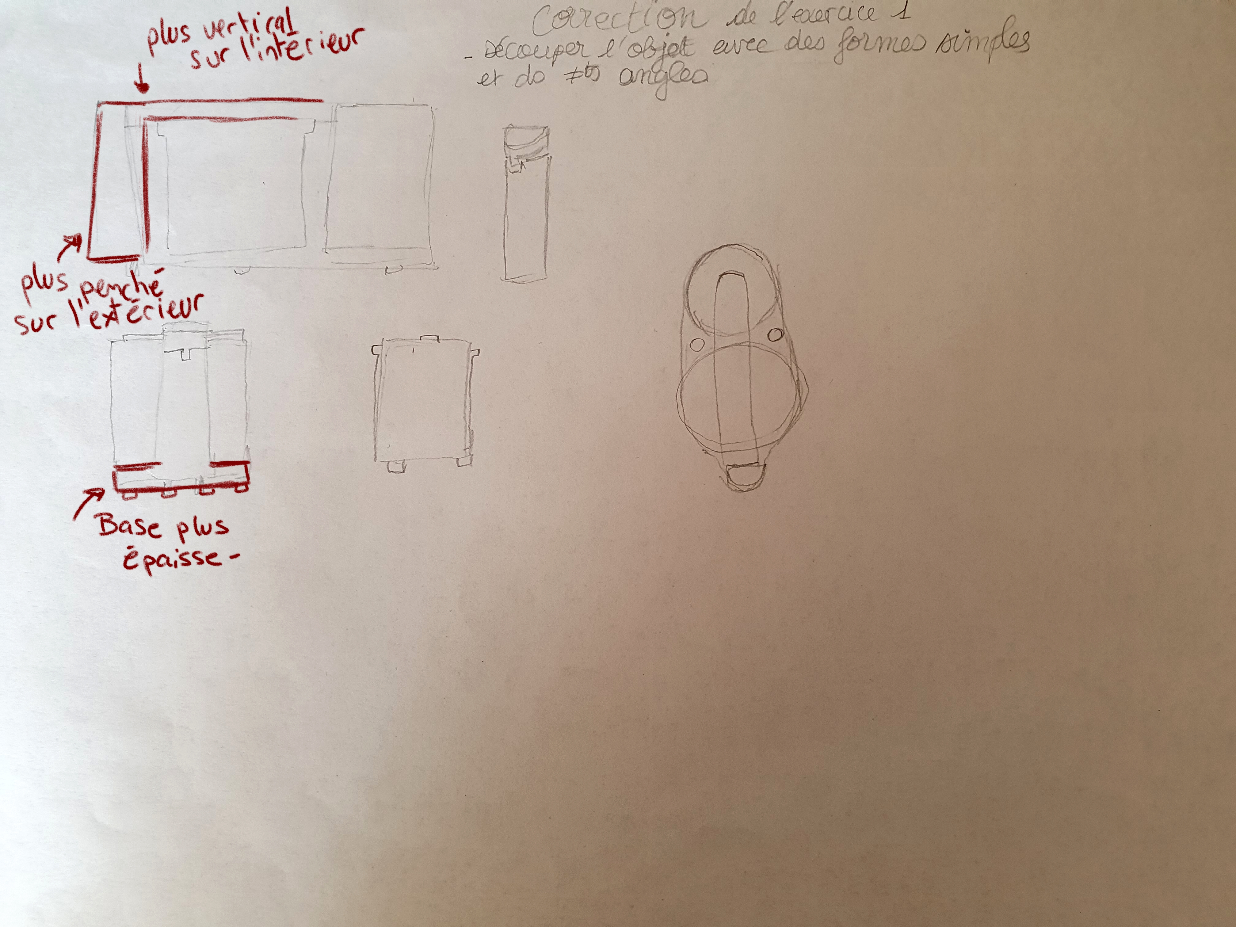 Et je vois que tu as très bien géré cet exercice d'observation. Les différentes vues sont bien représentées, bravo! Attention à la vue en 3D où il y a quelques petits soucis de perspectives (mais tu verras ça dans les leçons sur le sujet). Bonne continuation à toi!