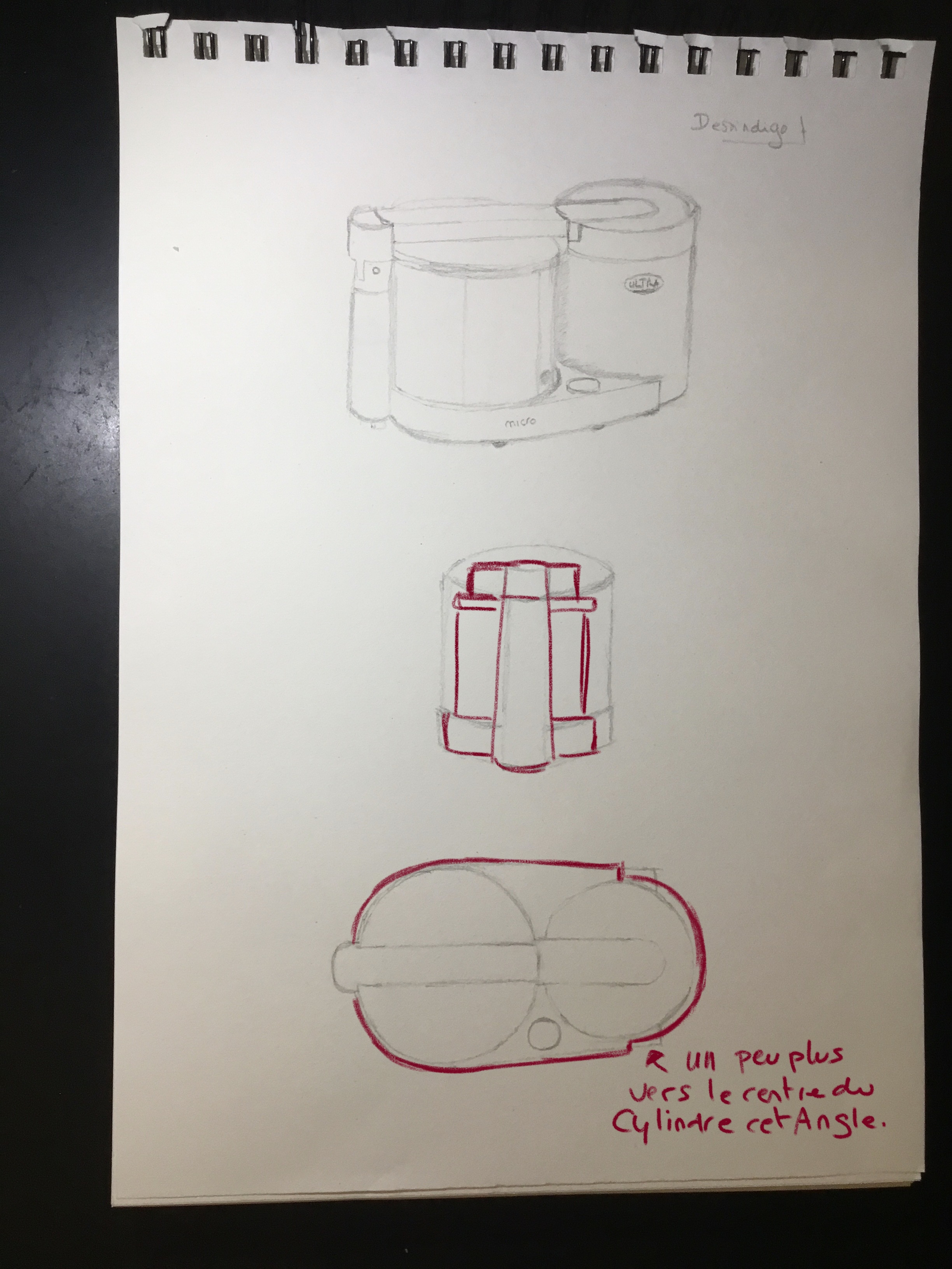 Bonjour Gaelle147, très bien ces premiers essais! Attention à la longueur du robot mixeur sur la vue de face. N'hésite pas à faire d'autres angles de vues en plus!
