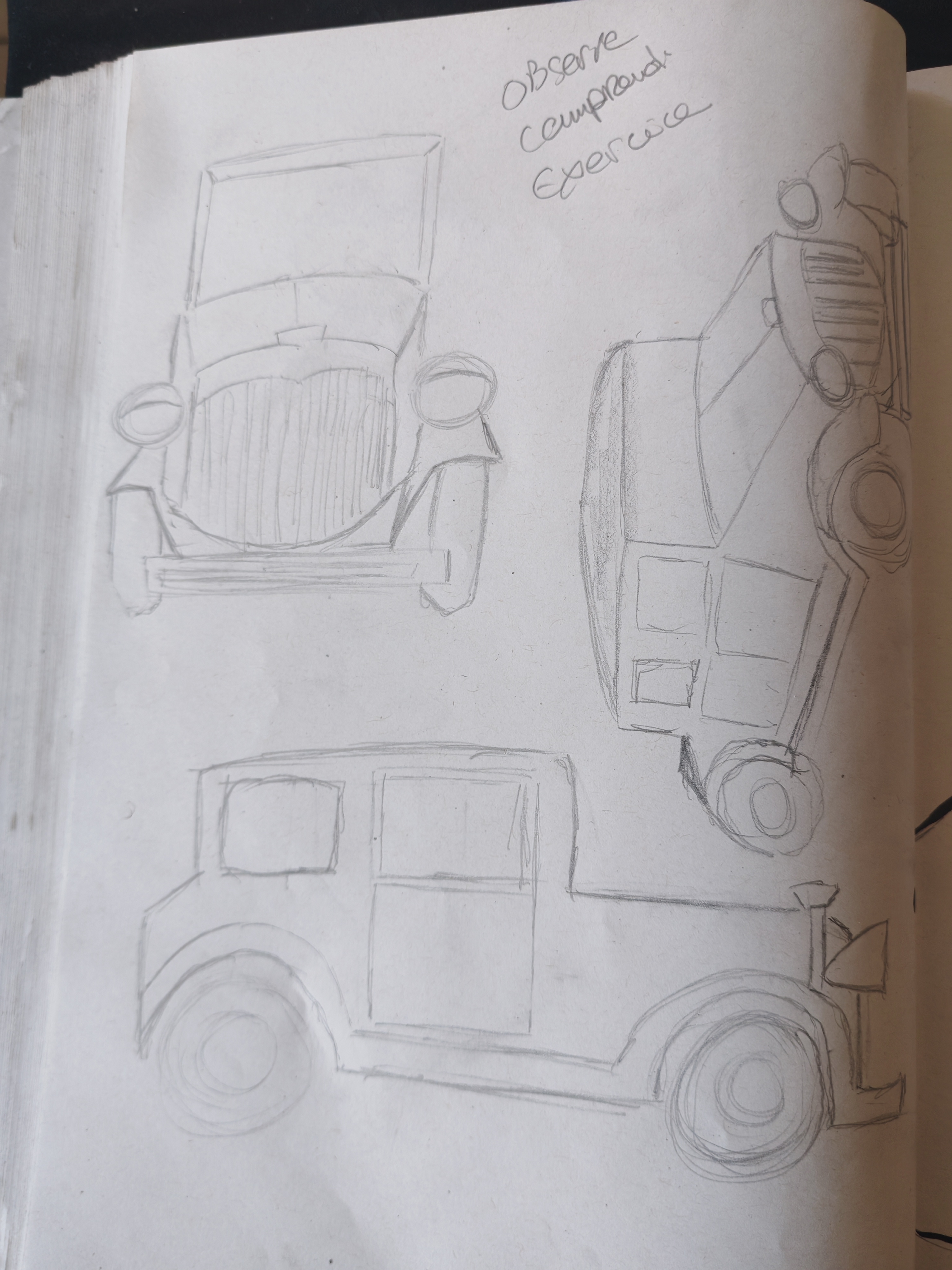 Tes dessins sont vraiment bien, on sent que tu as pris plaisir à les faire, bravo ! Pour la voiture, je n'ai pas grand-chose à dire. Je t'ai fait quelques corrections pour être un peu plus tatillonne, notamment sur le garde-boue qui devrait être un peu plus arrondi et sur le capot où on ne voyait pas très bien l'une des faces, mais c'est vraiment du bon travail ! Pour ton robot, les ellipses n'étaient pas très alignées, mais c'est aussi un détail. Et pour la coccinelle, dans l'ensemble, tu l'as fait un peu trop pointue. Tu as bien fait de varier les poses, n'hésite pas à le faire davantage pour les autres objets, cela va te faire progresser encore plus. Bien joué en tout cas :)