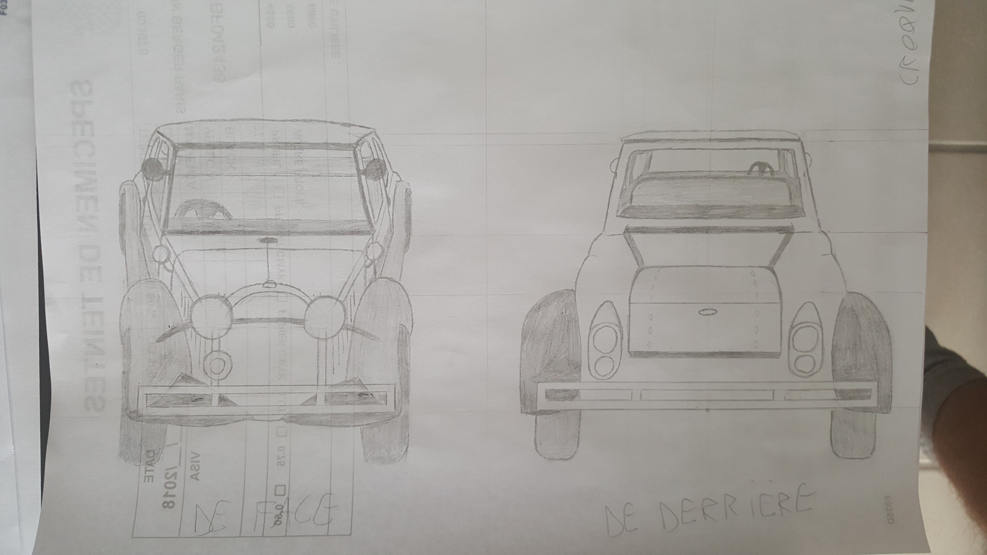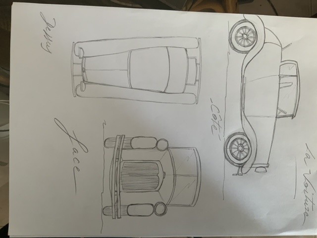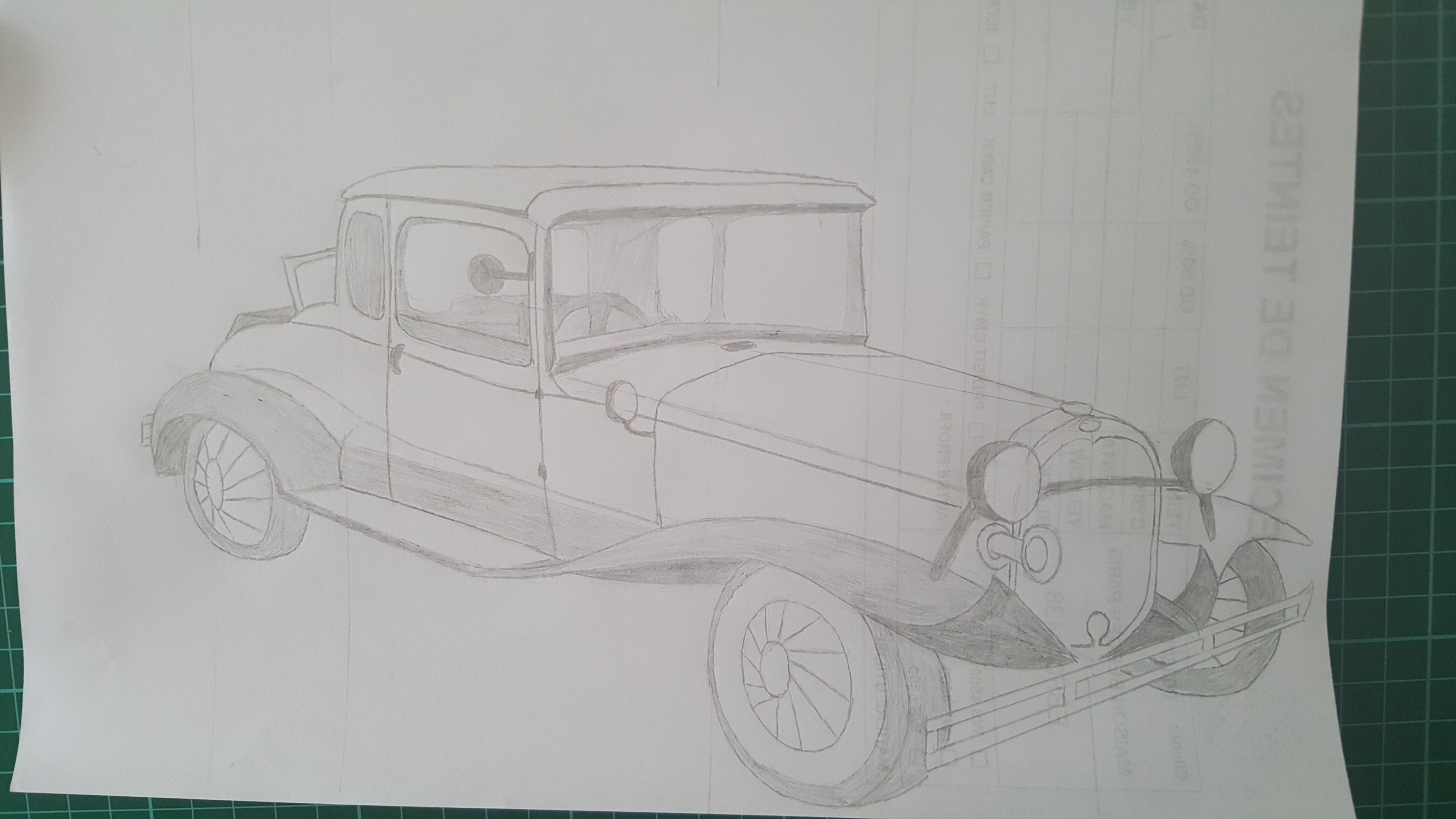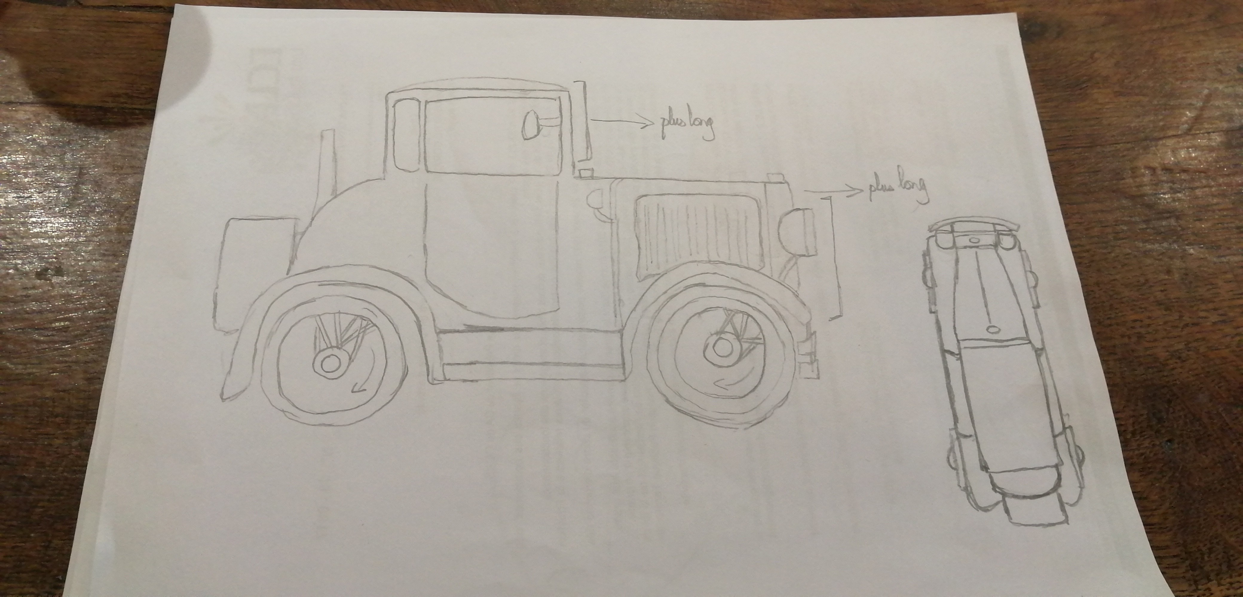 Voici ma correction pour la voiture. La cabine et le capot moteur devrait être plus long. J'ai fait limite un coupé.... Et je m'aperçois que je n'ai pas fait la vue de devant...