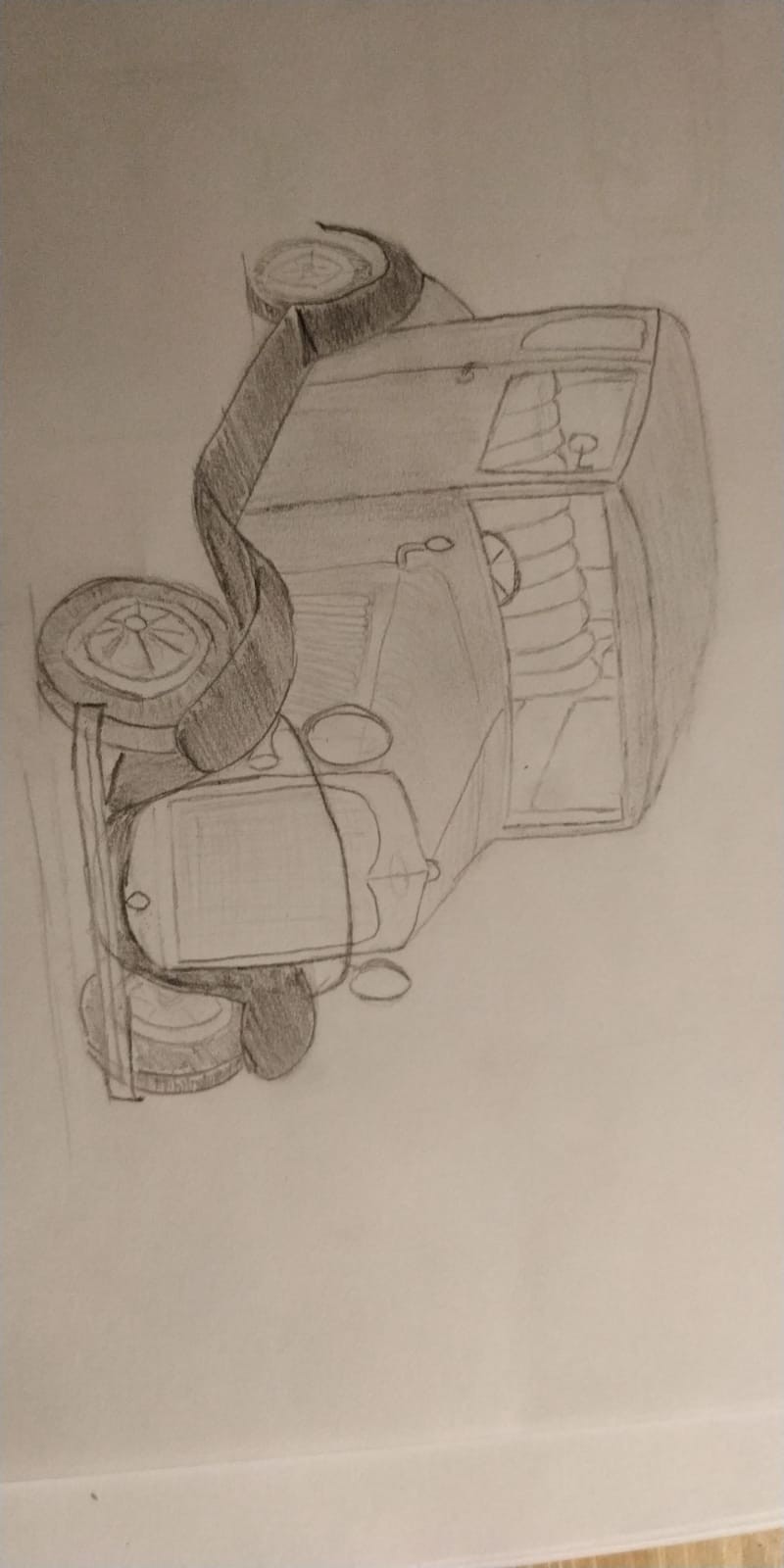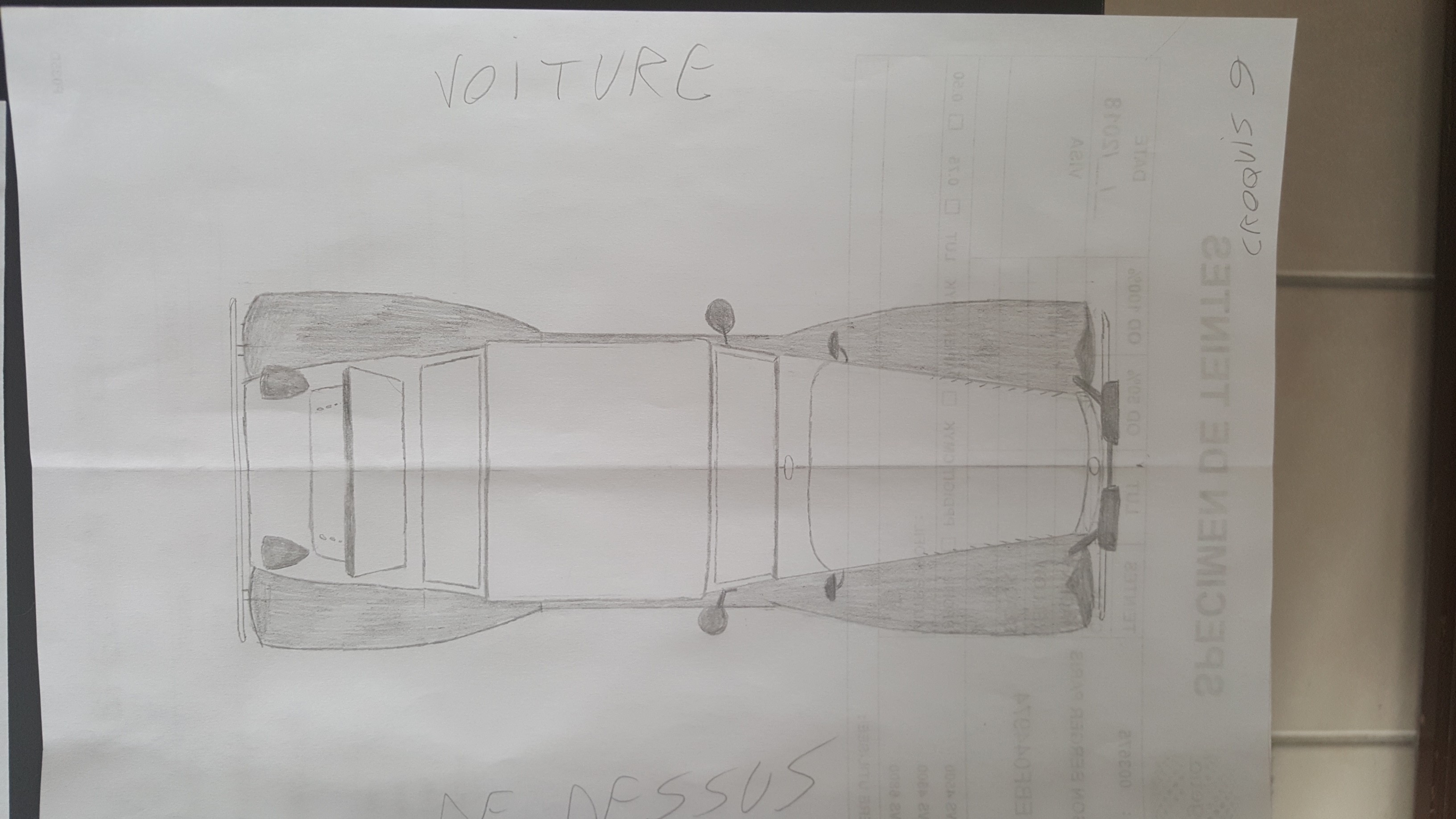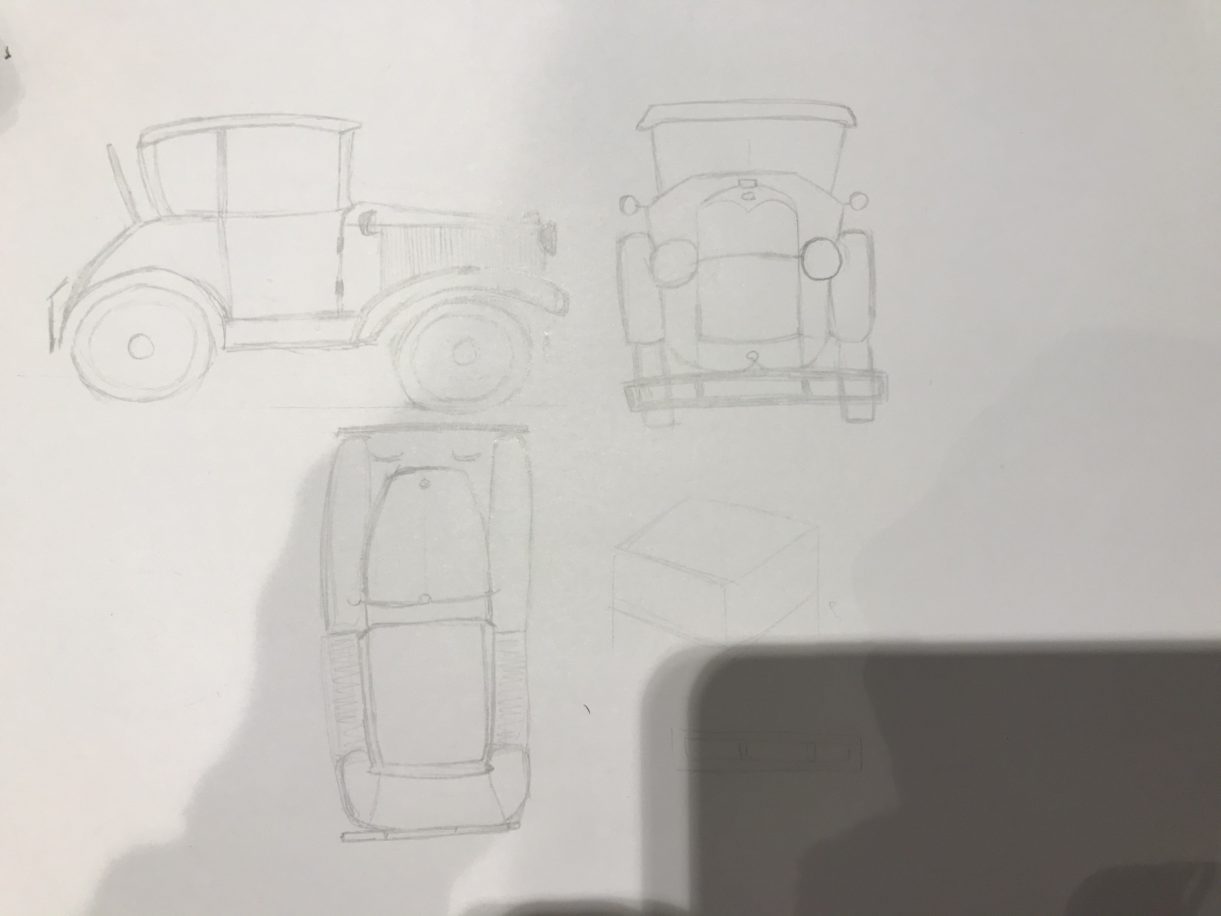 Voici ma correction pour la voiture. La cabine et le capot moteur devrait être plus long. J'ai fait limite un coupé.... Et je m'aperçois que je n'ai pas fait la vue de devant...