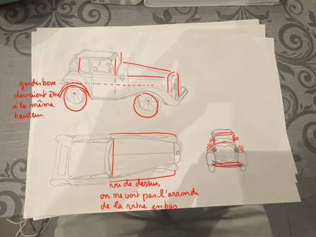 j'ai bien compris les remarques, j'ai eu juste un peu de mal à lire l'avant de la voiture et à m'en faire une idée mentale pour la dessiner...