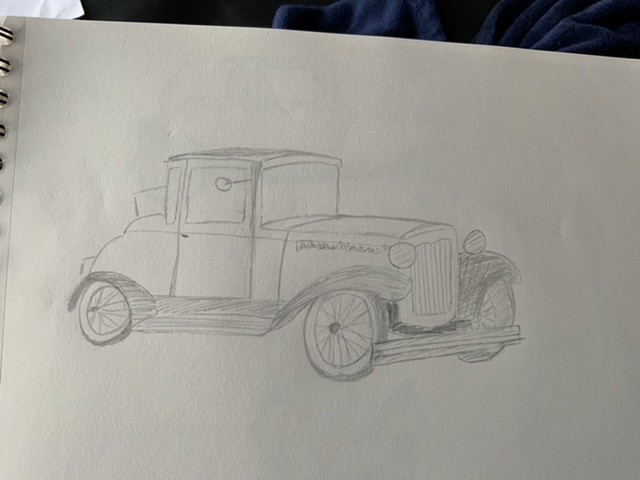 Pour la vue en perspective, j'ai l'impression que tu l'as faite un peu plus de profil que le modèle de base, on le voit avec le pare brise moins large qui paraît plus tourné par exemple. L'arrière de la voiture partant moins loin derrière, il parait moins cohérent de faire la roue arrière si petite car ça ne correspond plus à la perspective que tu as faite. Mais bon, ce n'est pas encore l'exercice de perspective, donc ce n'est pas très grave, car la construction est bonne.