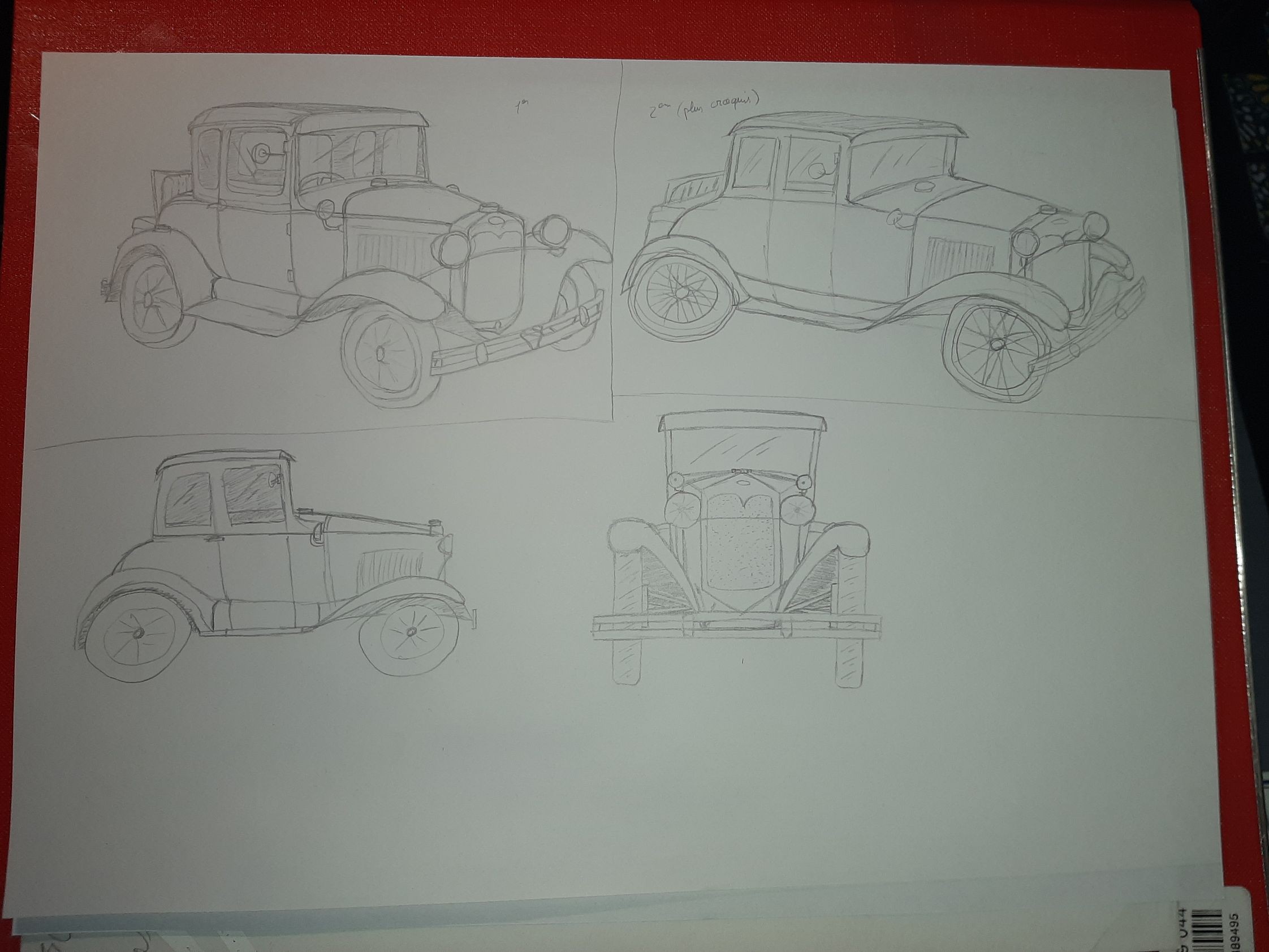 Salut ! Voici mes croquis de voiture rétro, je n'est pas vraiment d'idée sur la réussite de l'exercice c'est pourquoi je suis ouvert a la critique ! N'hésiter pas !😉😇