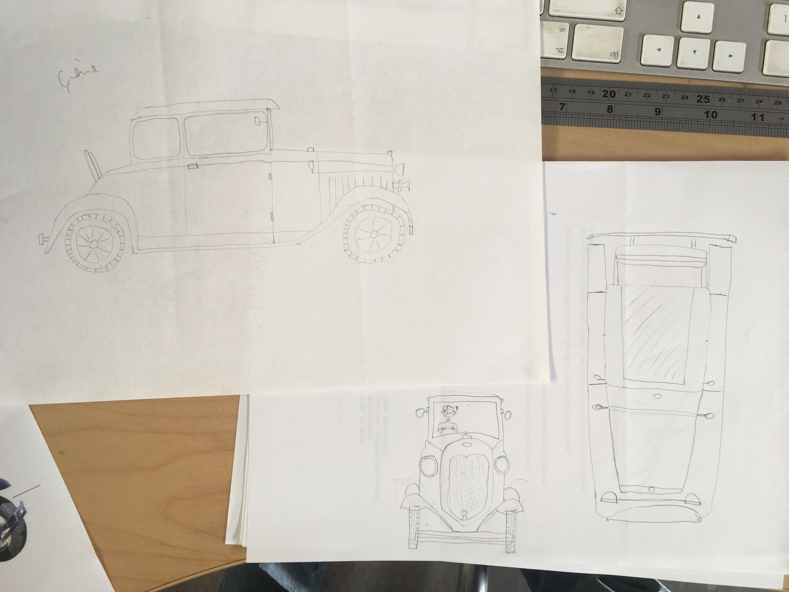 Tes deux autres vues sont très bien, mais je ne suis pas persuadée que l'avant soit autant "gonflé" que ça.. Quand on compare les garde-boues au marchepied qui sont en continuité... Eh bien ça n'a pas vraiment l'air de s'élargir, et si c'est le cas, c'est compensé avec le nez de la voiture qui s'amincit. Au final la vue de dessus doit être assez rectangulaire je pense :)