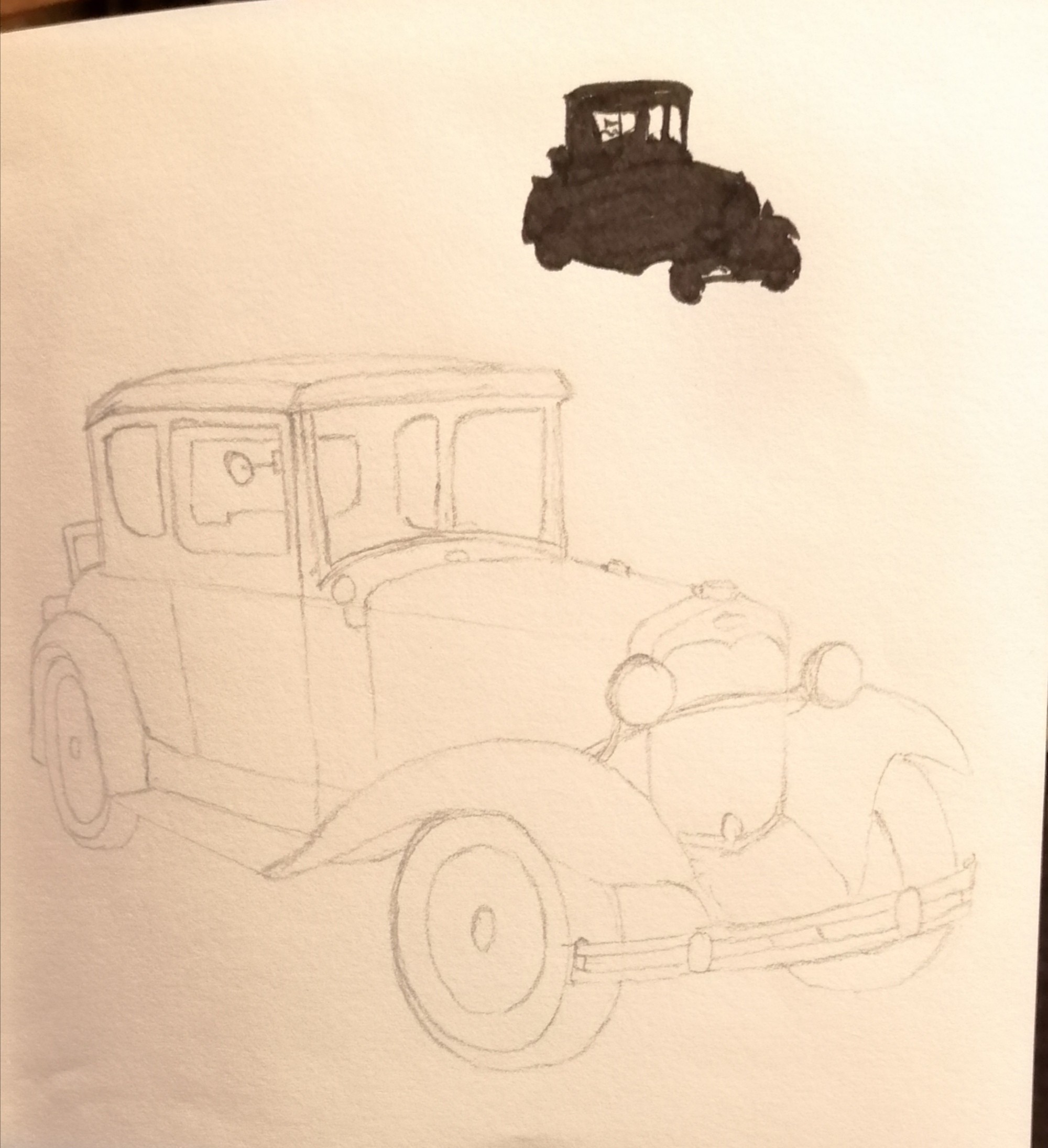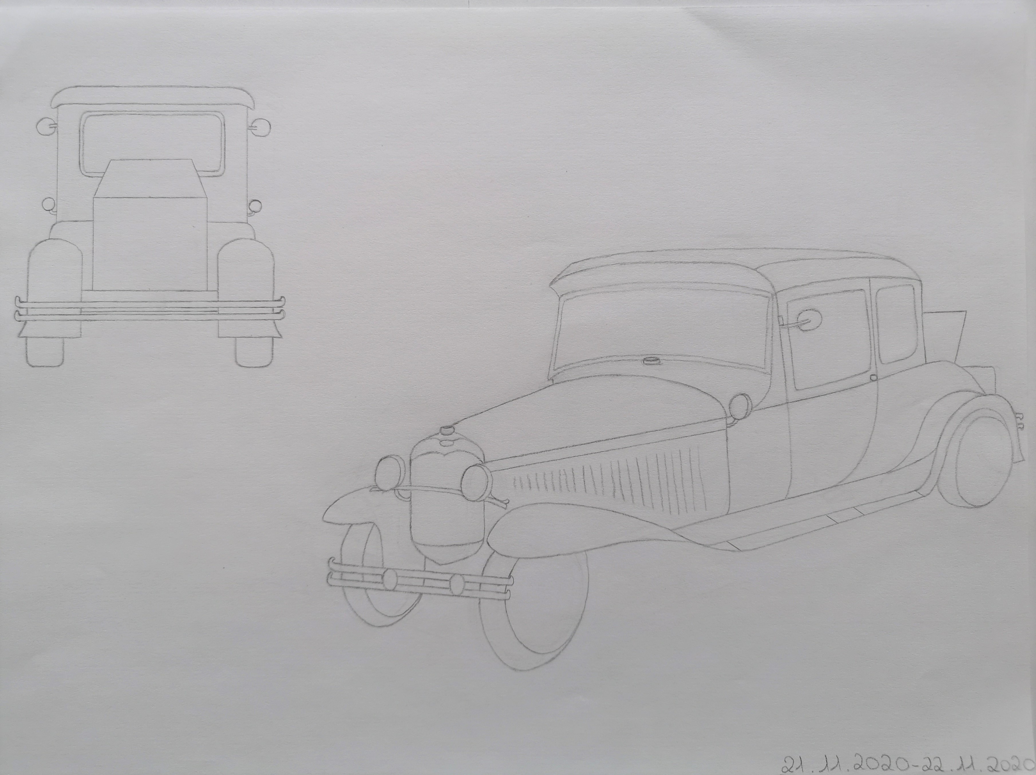 J'ai l'impression que tu as pas mal raccourci le nez de la voiture qui me semble quand même assez long en dépit de la perspective, sur la référence... Cela dit c'est ma seule remarque, le reste me semble bien ! Bien joué !