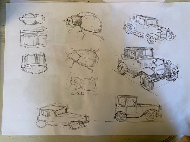 La vue de profil, effectivement tu as remarqué que le nez était trop court. Je pense que l'habitacle n'est pas trop long mais il aurait pu commencer un peu plus tot, donc le déplacer légèrement à gauche.... Et rallonger le nez en effet !