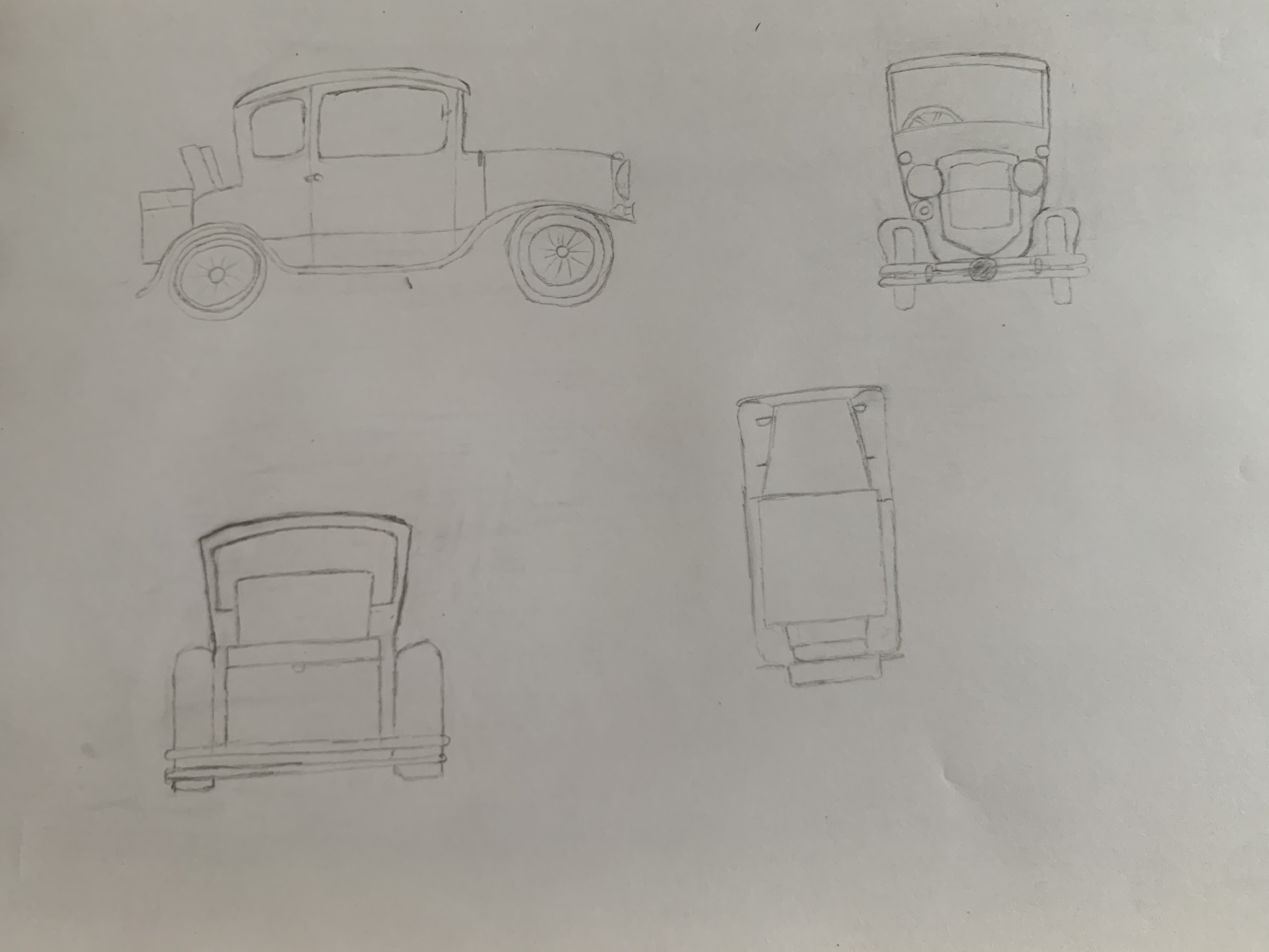Voici ma voiture, j’ai essayé de faire des « mesure » pour avoir une idée des proportions. La vue de face est un peu bancale je crois (en diagonale)