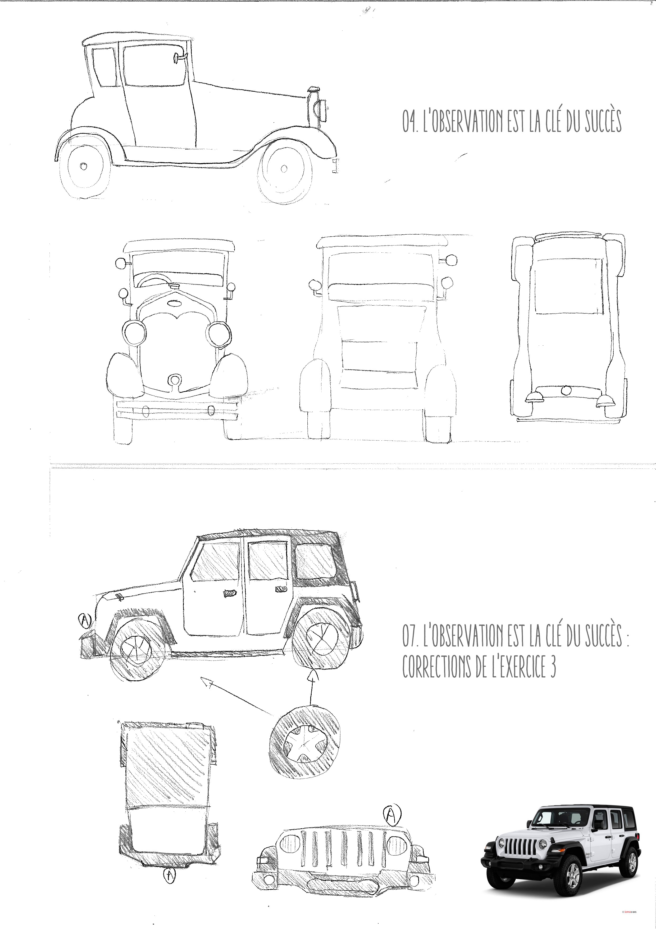 Voila pour ce troisième exercice. J'ai eu un peu de mal avec les proportions en vue du dessus. Je vais continuer à m'exercer en appliquant ta méthode sur d'autres véhicules.