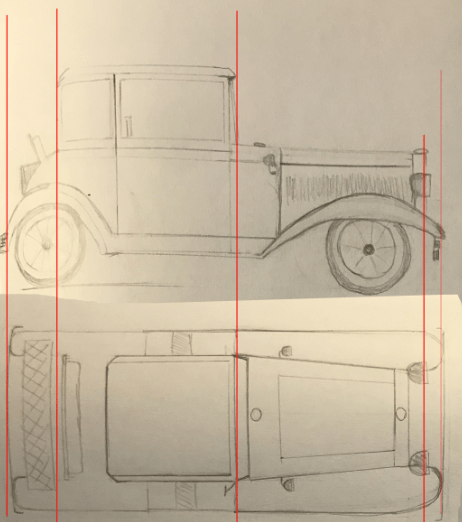 Donc. Pour ta vue de profil, c'est pas mal mais le nez de la voiture est un peu trop court. En dehors de ça ça fonctionne bien, tout est en place.