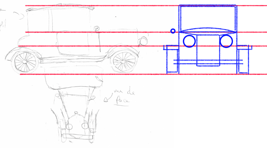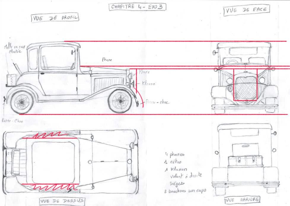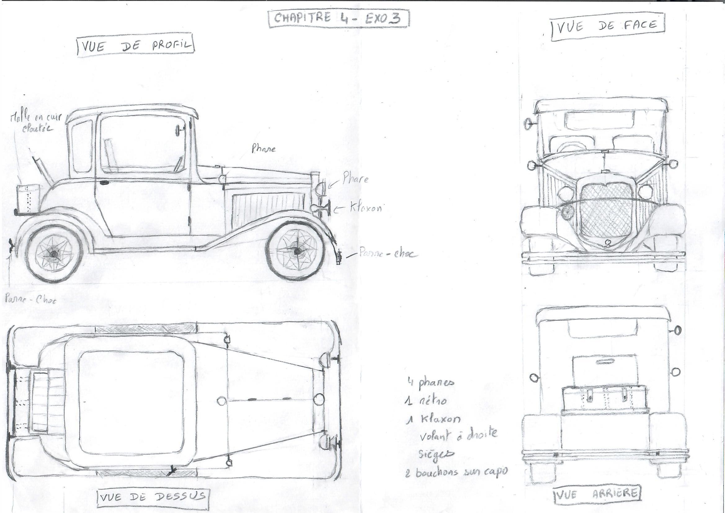 Bonjour, en suivant vos conseils, j'ai refait la voiture en essayant de la compléter un maximum, j'ai également essayé de la faire de face mais j'ai eu du mal^^ !