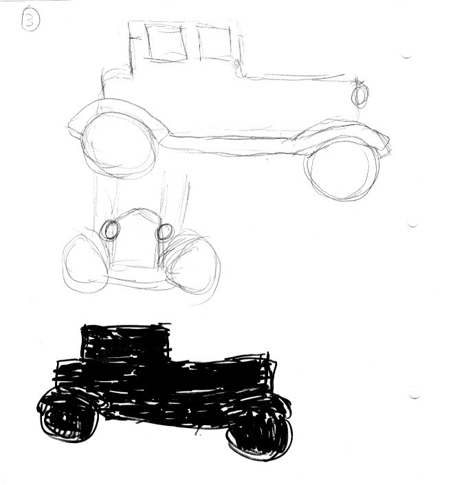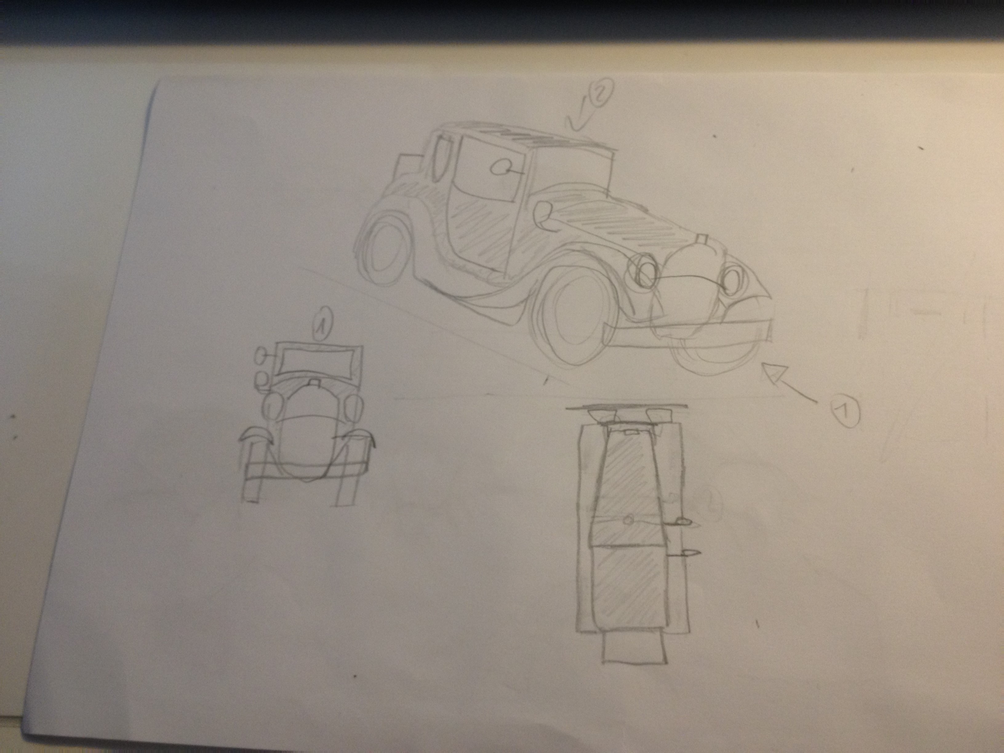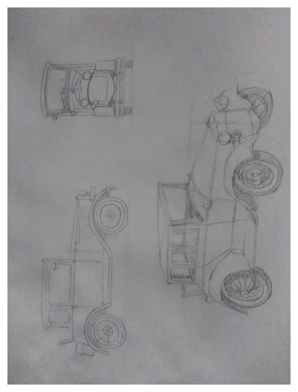 ...Par contre... C'est les roues qui sont rondes sur la vue de face ? Bon, ce n'est pas très clair, mais en tout cas ça manque un peu de précision. Ce serait bien que tu refasses cet exercice en prenant un peu plus ton temps ^^