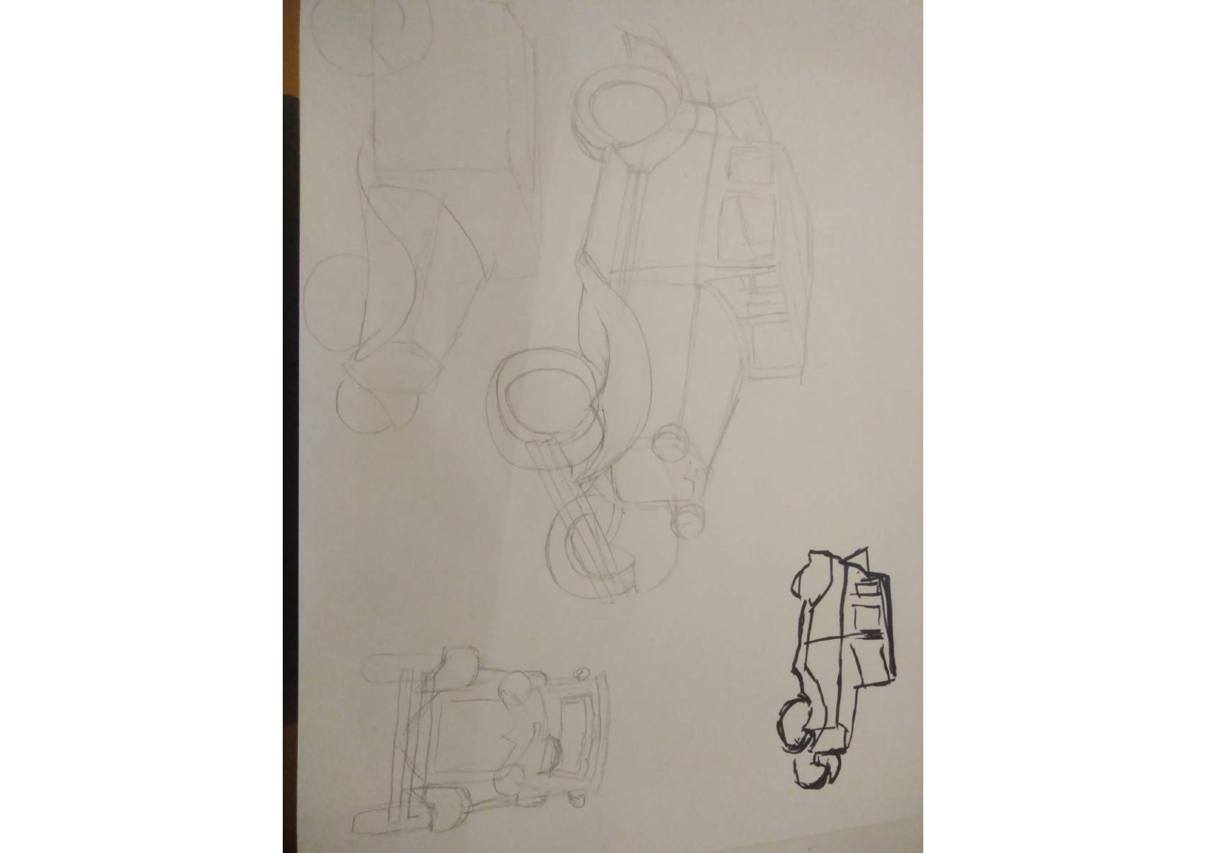 Enfin arrivée à bout de cet engin. Le plus dur pour moi a été d'oublier les détails dans un premier temps pour vraiment essayer de se concentrer sur la forme générale. Comme pour le robot en faisant la vue de face, j'ai pu noté des erreurs sur la vue de profil et donc essayer de les corriger.