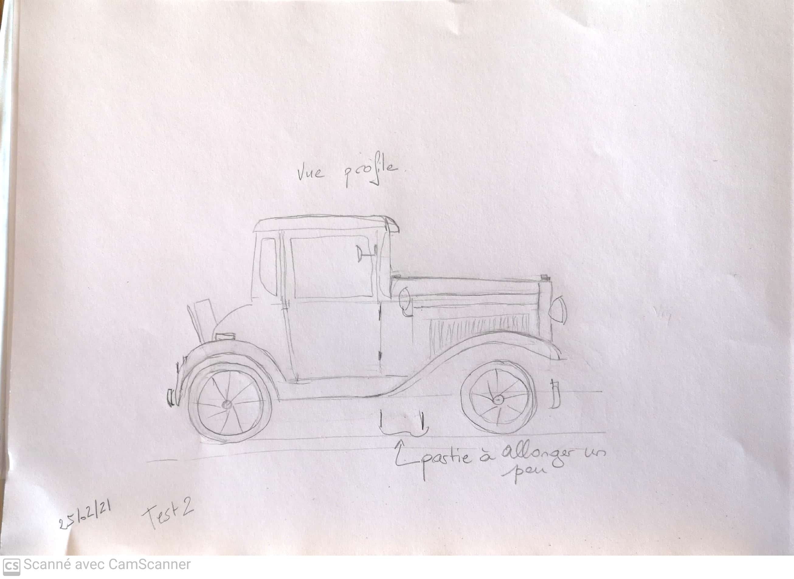 Pour ta vue de profil, il manque en effet un peu de longueur au niveau du nez de la bagnole, mais en dehors de ça c'est bien :) bien joué ✔️