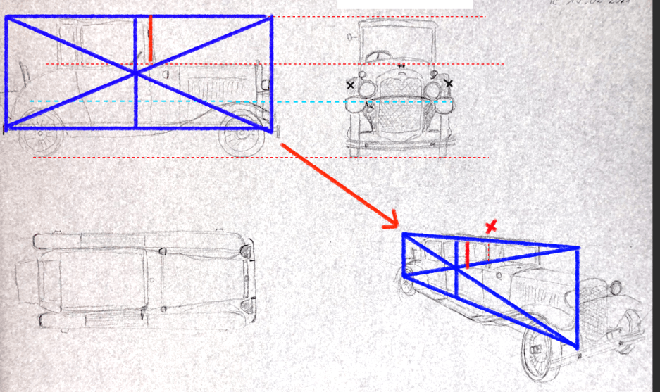 C'est pas mal du tout ! Comme ça j'aurais dit que le nez de la voiture est un poil court sur ta vue de profil, et sinon ta vue de dessus devrait être plus droite je pense, cf le fichier joint :)