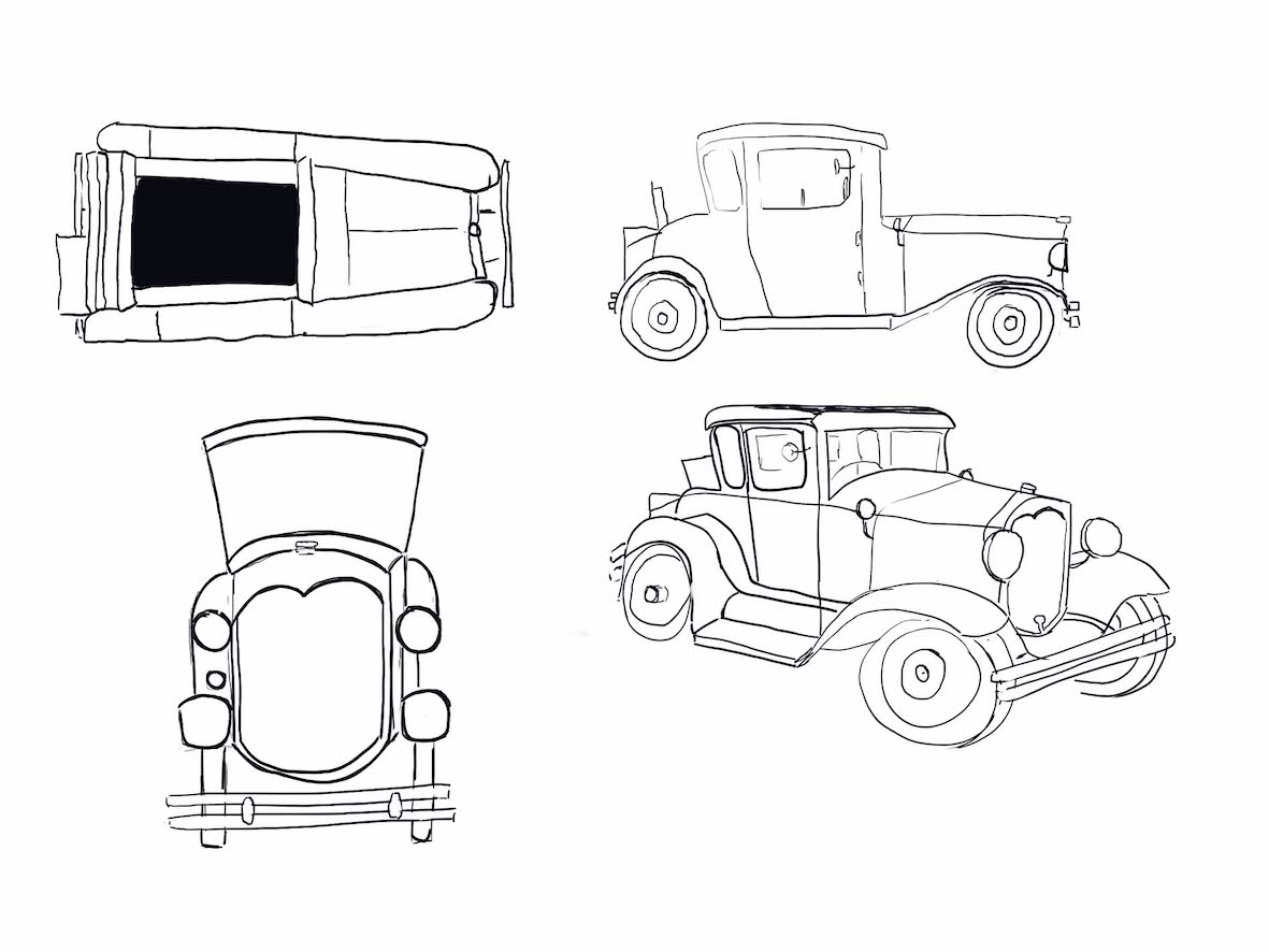 Joli travail ! Cette voiture est bien comprise et bien proportionnée :) J'ai juste corrigé quelques détails sur les dessins ^^