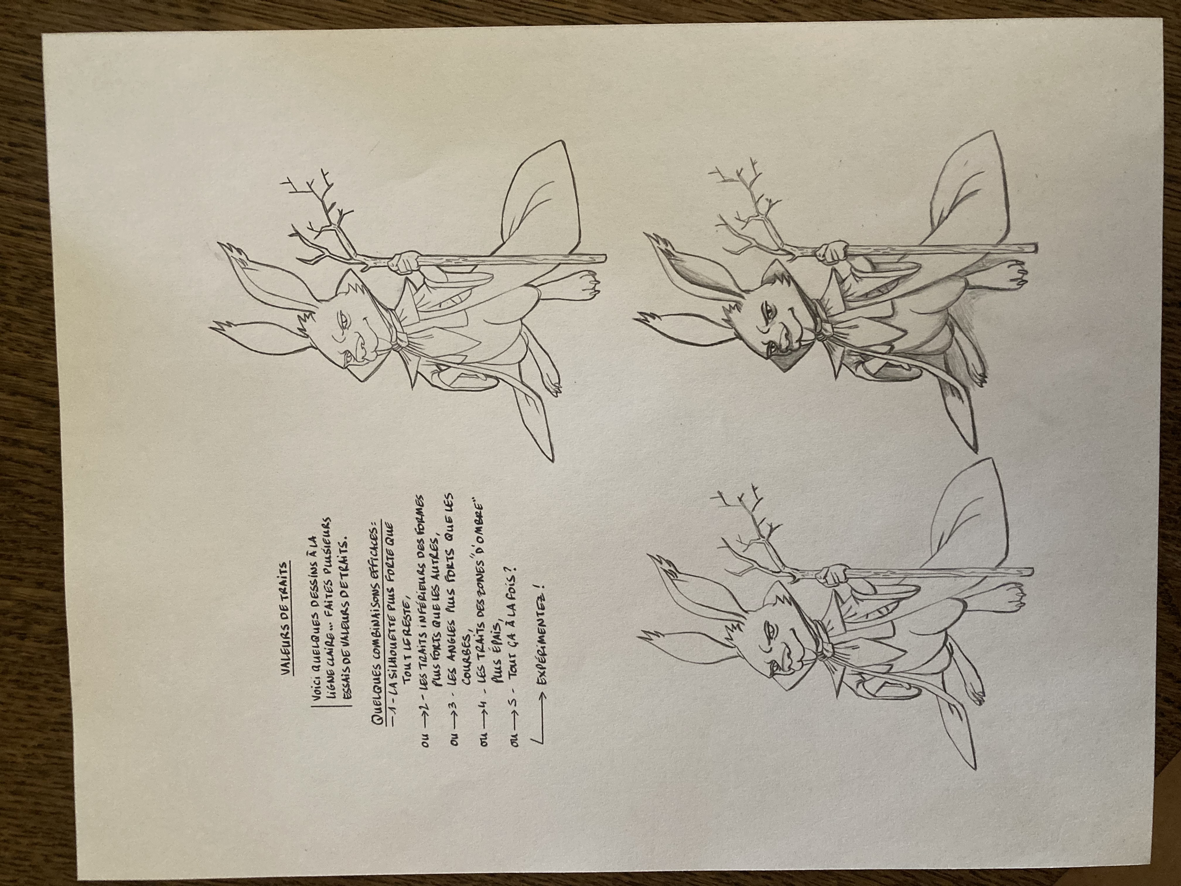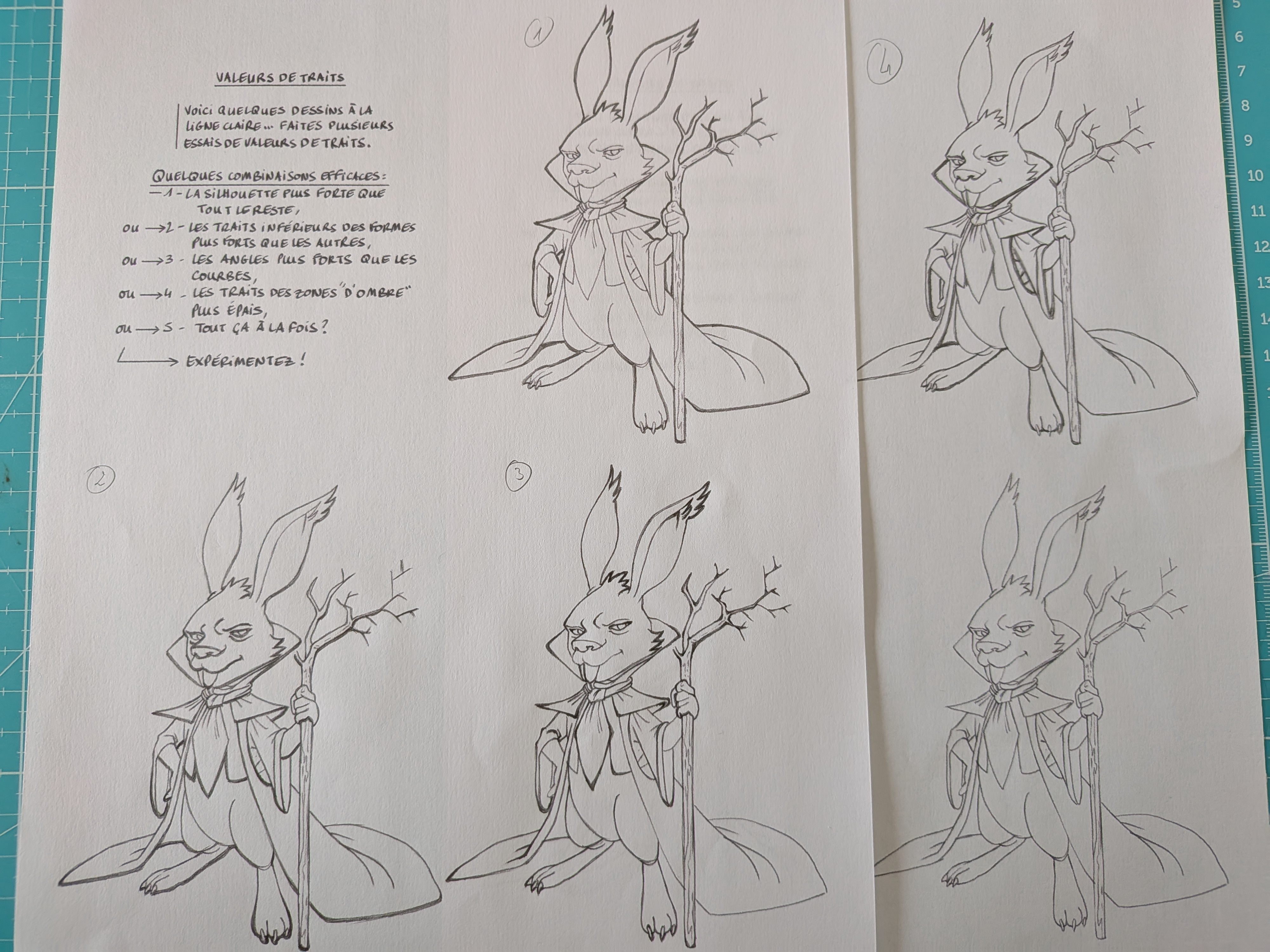 Je tiens à te dire que l'exercice est très clair et très net dans l'ensemble. On peut apprécier la différence entre chaque proposition et la façon dont elles enrichissent le dessin. Très bien fait !