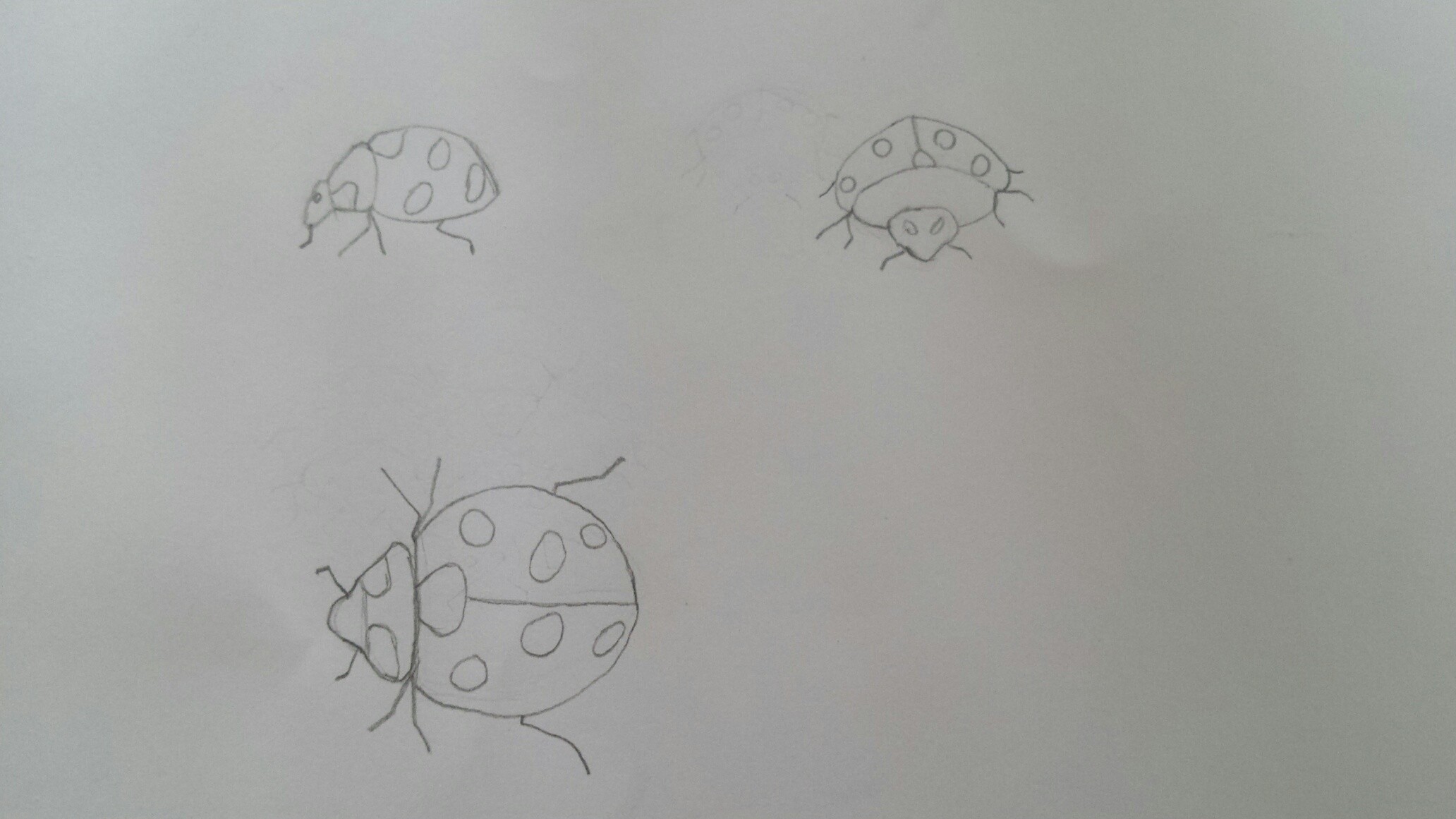 Voici mes 4em (en haut) et 3em croquis de coccinelle.