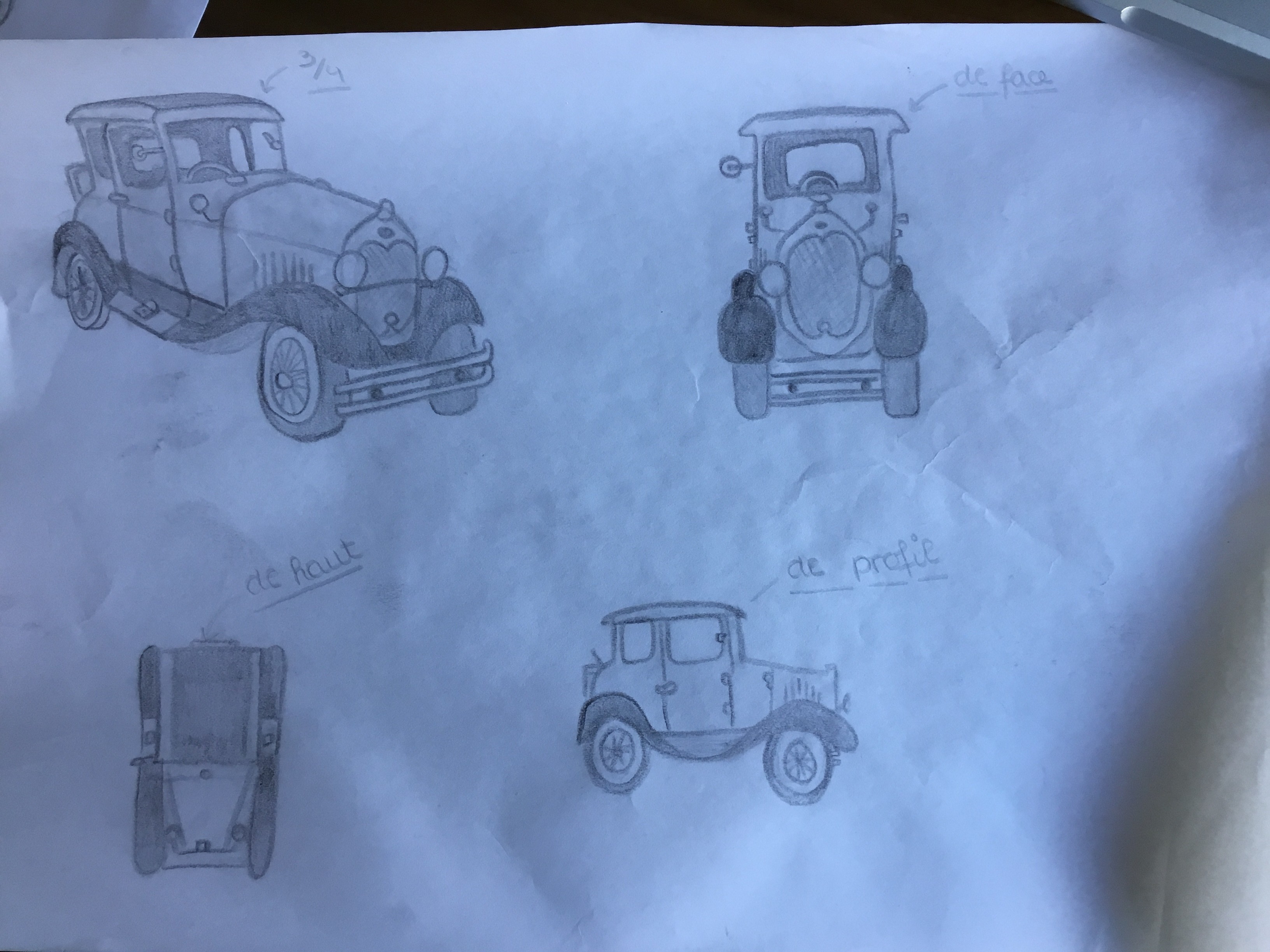 Bonjour ! Je vous ai placé en pièces jointes mes croquis de la voiture. La coccinelle et le mixeur (enfin si c'est un mixeur, j'appelle plutôt ça un engin de torture😆) arrivent dans le commentaire suivant. Désolée pour l'état de la feuille, il y a eu un petit accident de rangement ;) Je vous remercie d'avance pour le retour! 😉