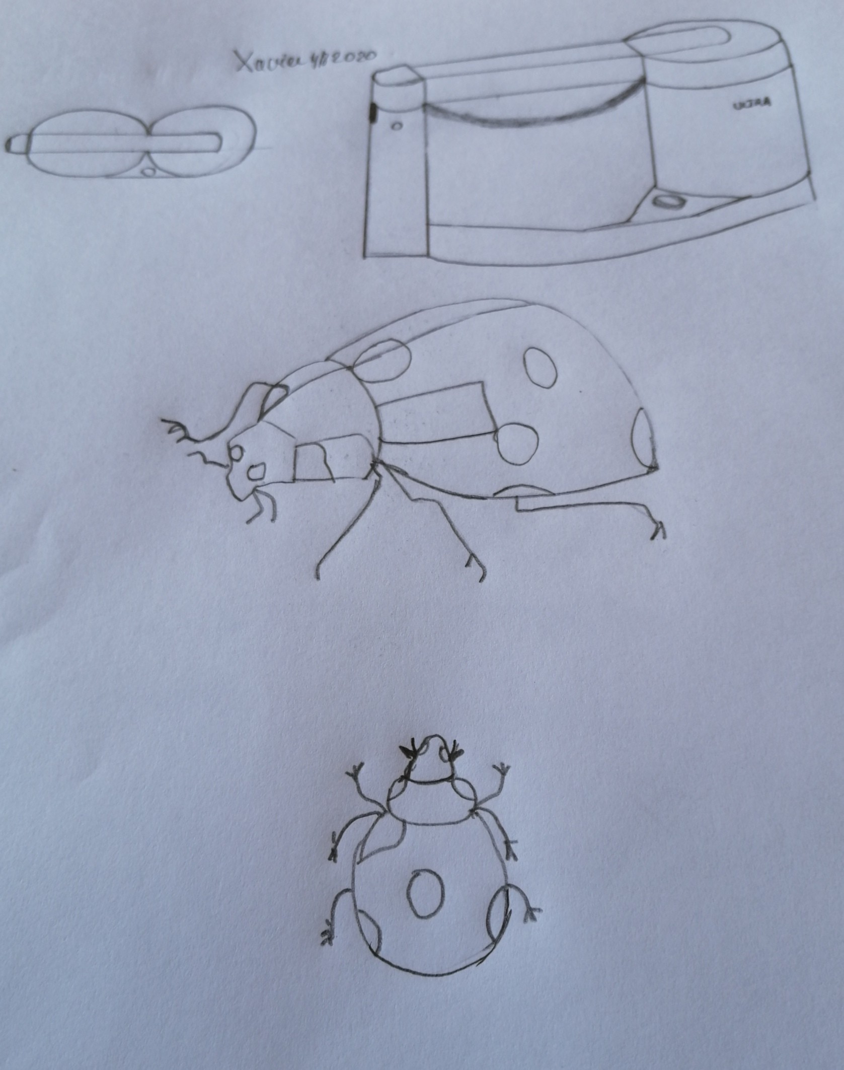 Je peux remarquer quelques soucis au niveau des pattes de ta coccinelle, au niveau de ses proportions et il manque parfois un peu de précision, je dirais. N'hésite pas à revoir cela !