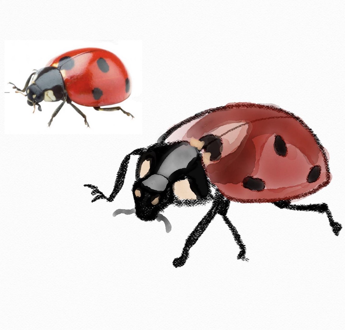 Voici la coccinelle ! Je l’aime bien ! Je dessine sur iPad avec l’application Sketches. J’ai commencé il y a un mois. J’ai découvert vos cours la semaine dernière et j’aime beaucoup !