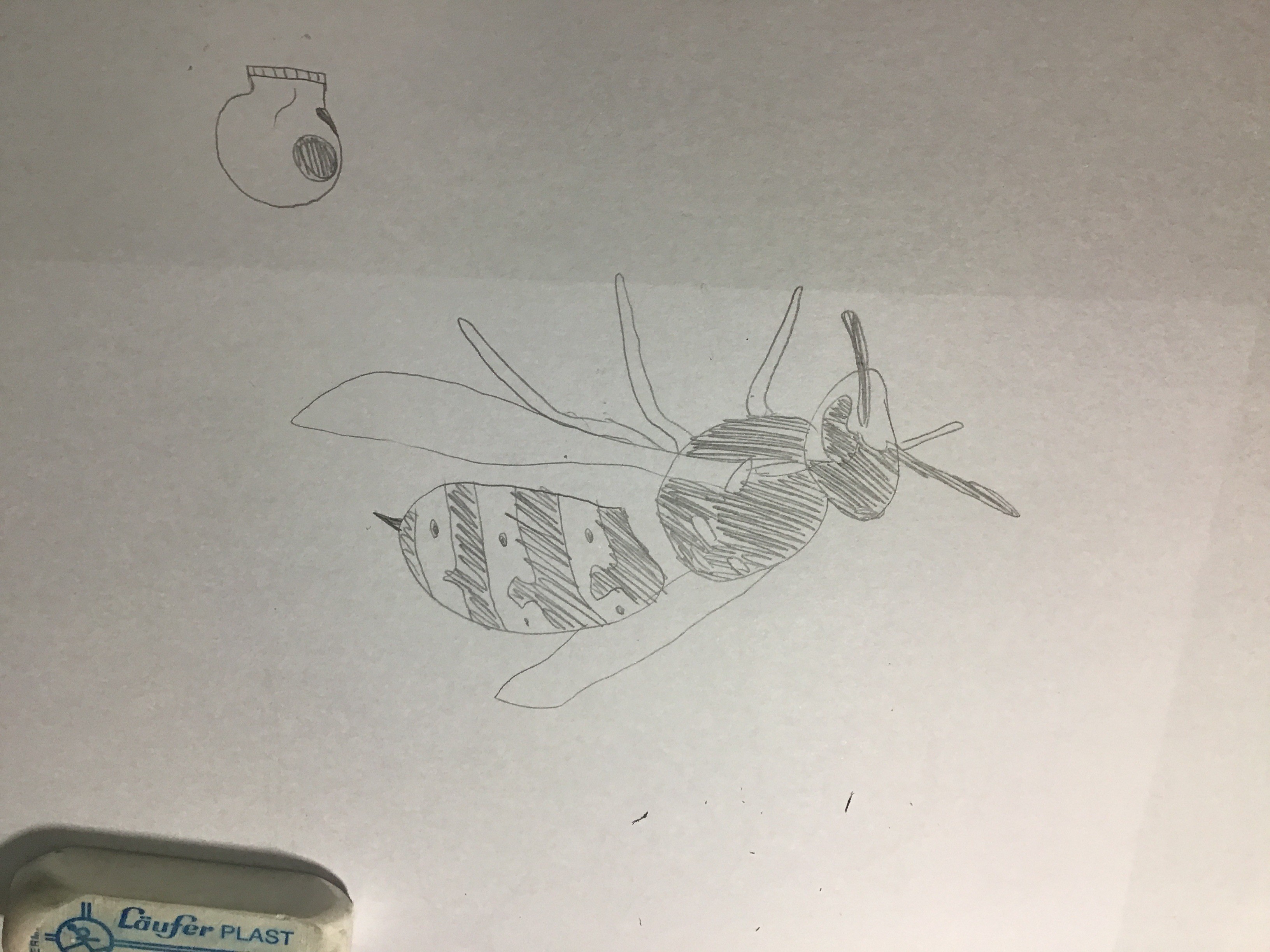 J'ai juste voulu faire des croquis rapides pour estimer les ordres de grandeurs entre les différentes parties de chaque objets comme dans la vidéo, mais je suis très nulle en estimation de tailles, volumes etc et j'ai vraiment l'impression que ça ne donne rien et que ma coccinelle est une alien. Mais je dois avouer que je n'ai jamais regardé une coccinelle d'aussi près et en détails...