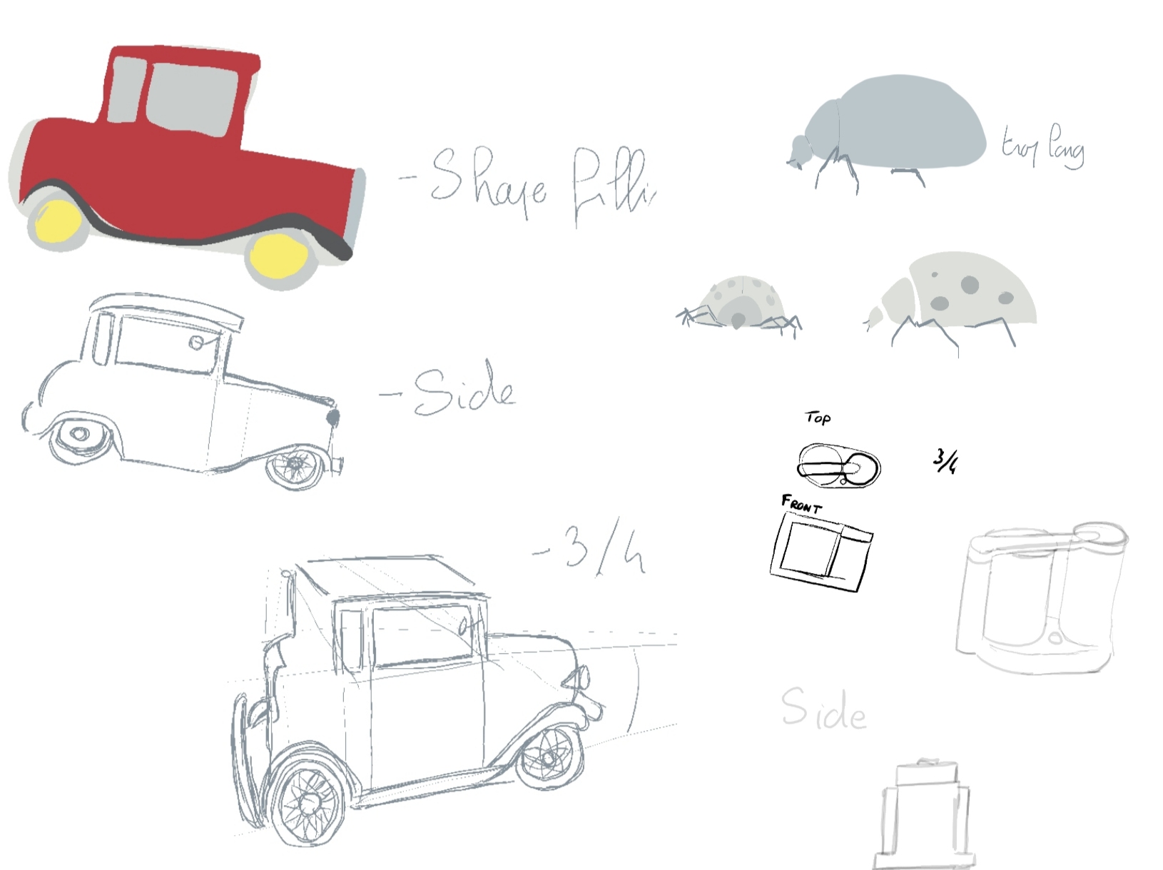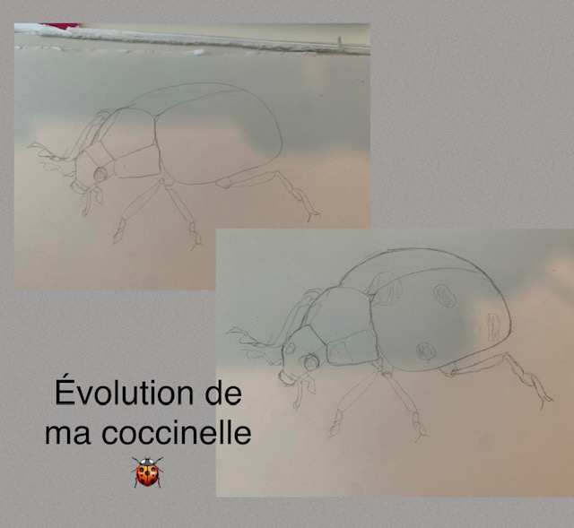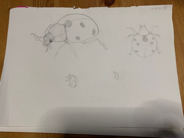 Mes tentatives sur les 3 dessins d'entraînement. C'est vraiment pas évident de garder les proportion ... J'ai tenté de faire l'insecte en mode remplissage, mais ça n'est pas géniale comme résultat.