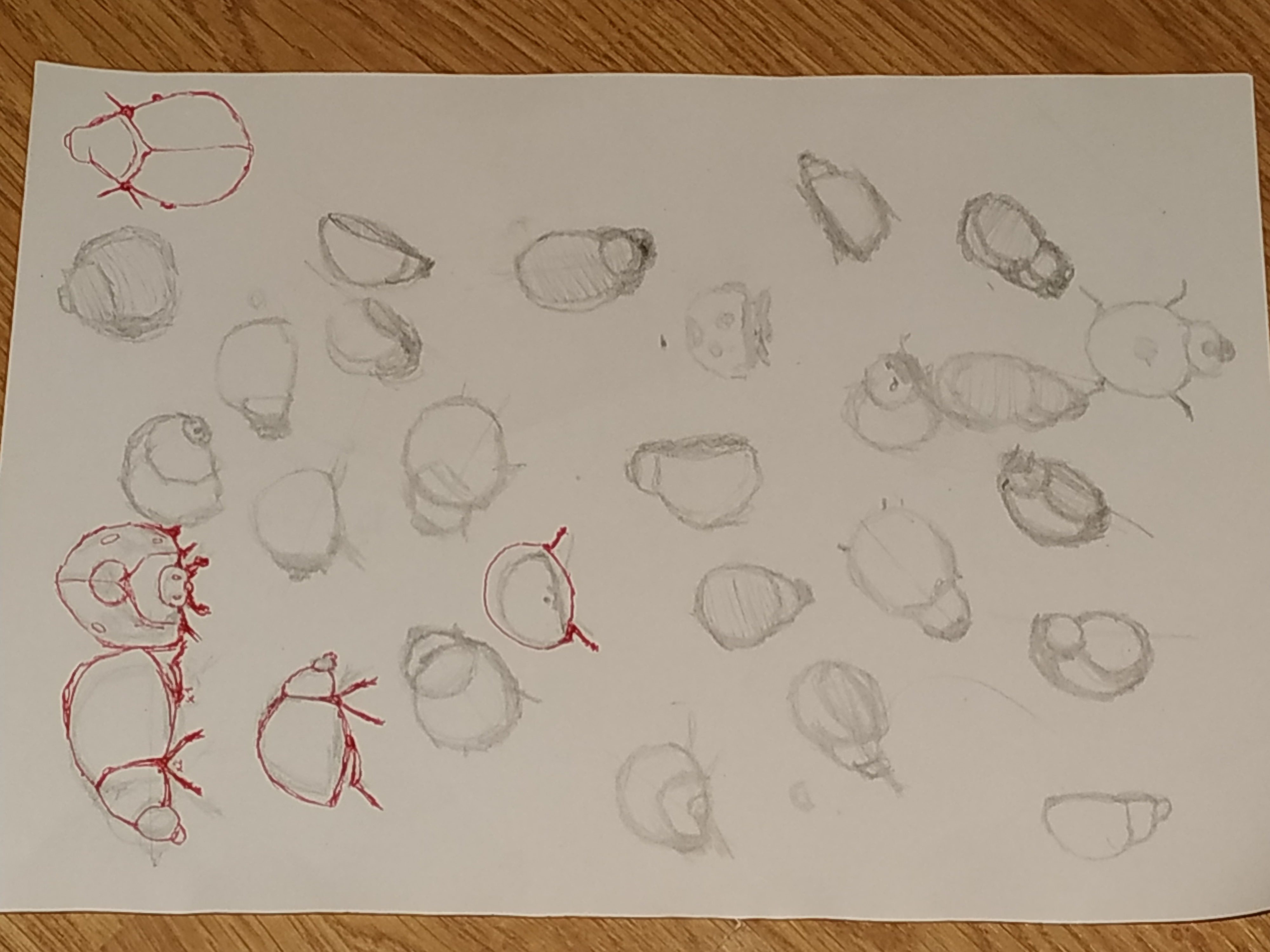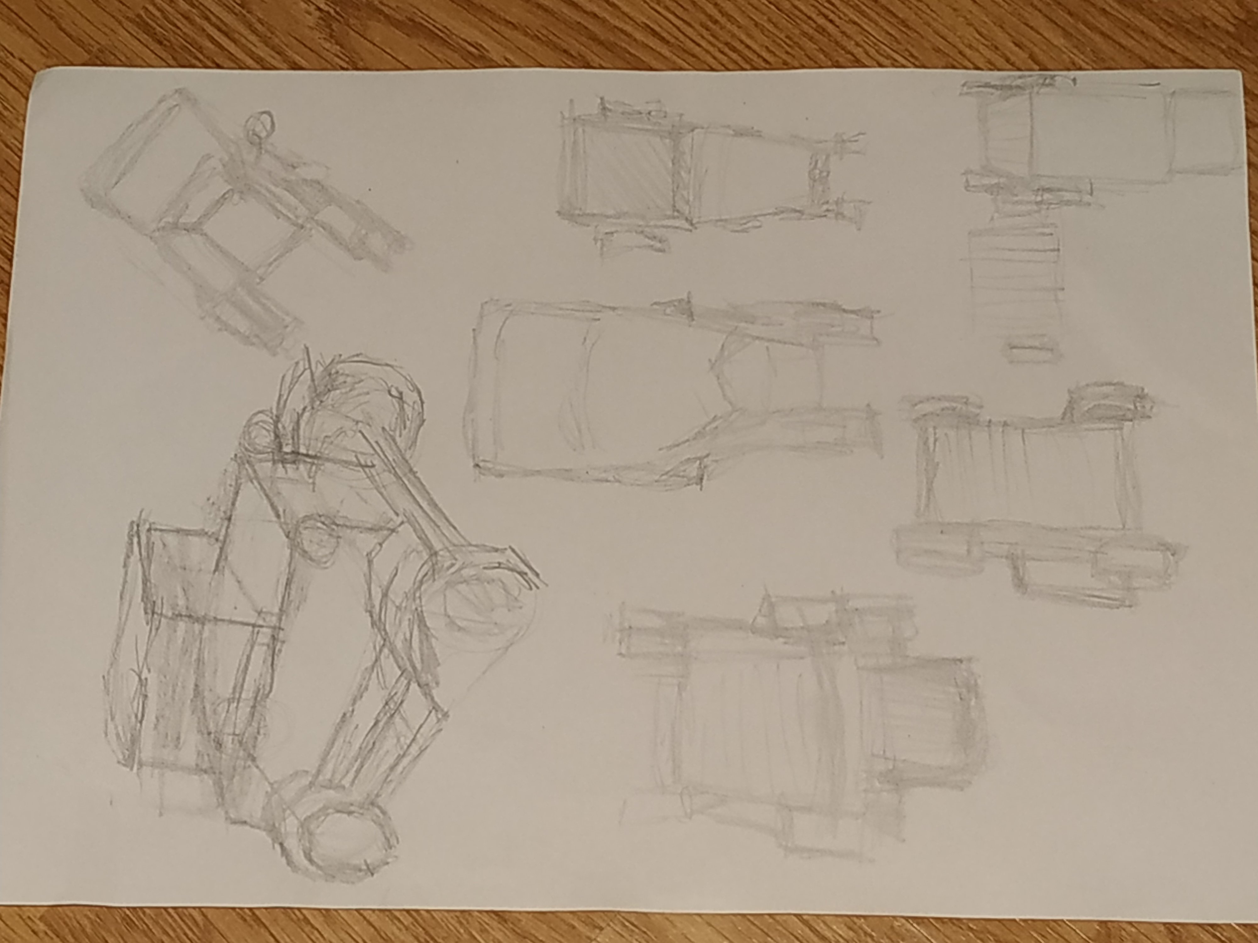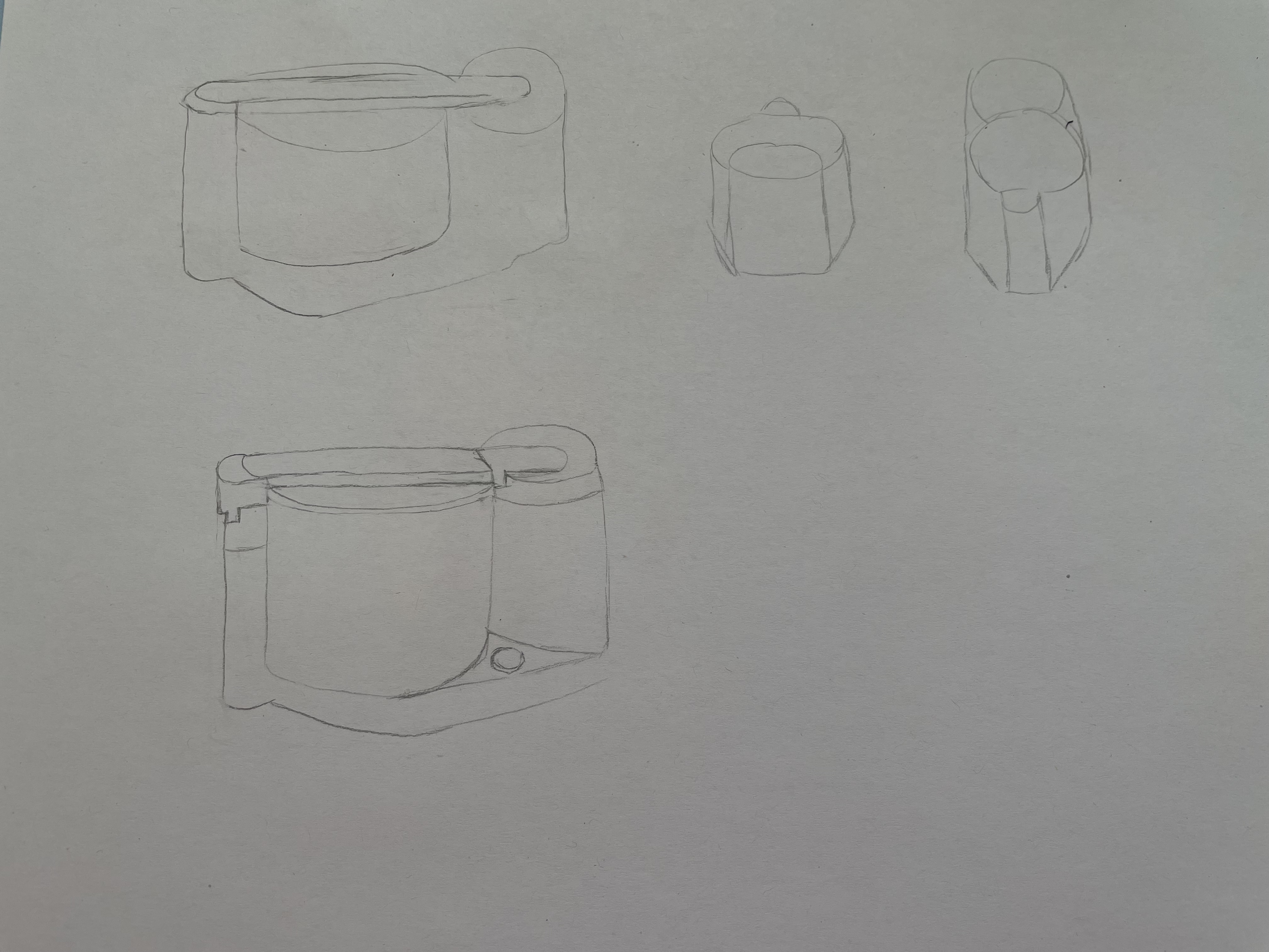 Bonjour Voici mon premier essai. Pour l'instant je n'ai fait que les objets comme ils sont présentés sur l'image. Est-ce que dans les planches d'étude on doit "imaginer" les autres vues où les rechercher sur d'autres images ?