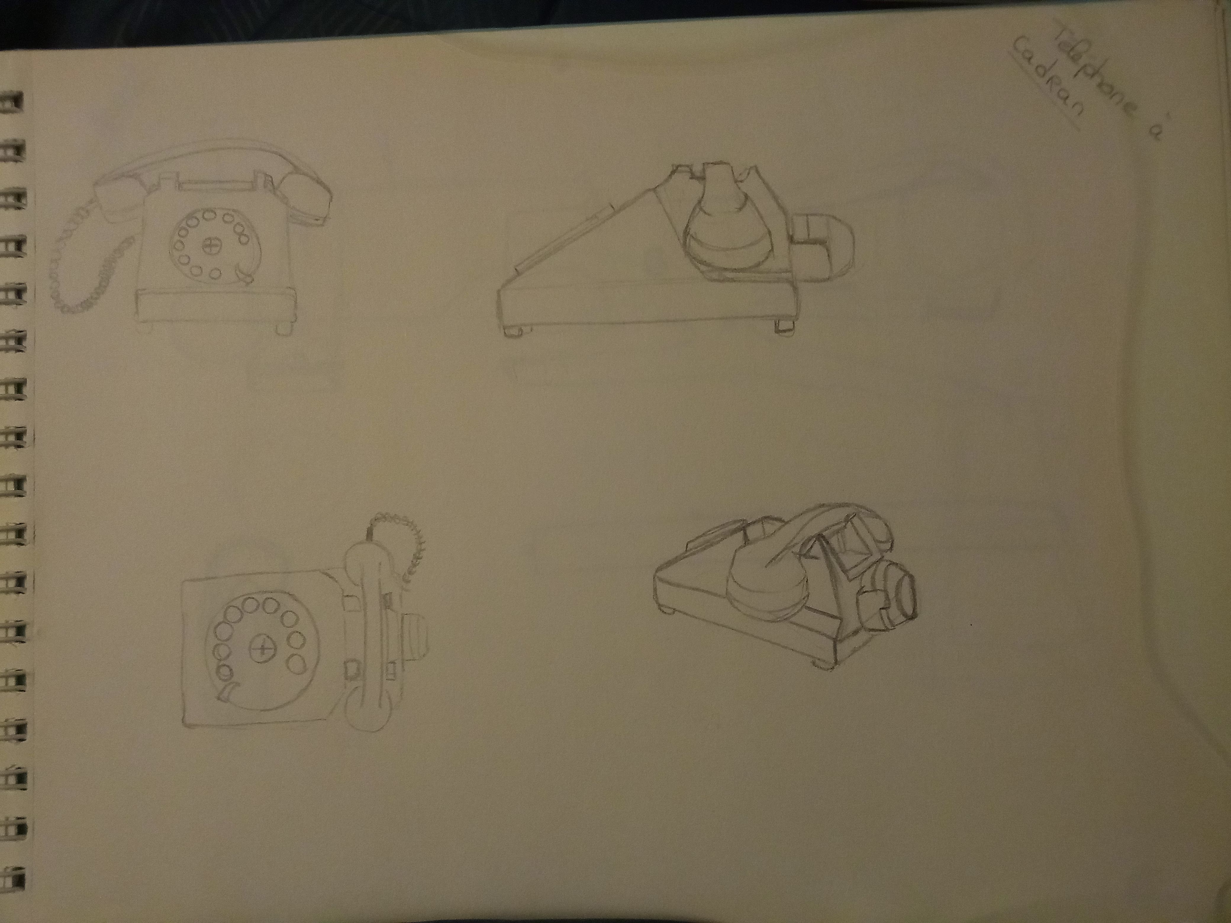 j'aimerai avoir votre avis sur un dessin d'observation et croquis en 2d d'un téléphone à cadran. Je m'excuse de ne pas vous présenter les objets du cours mais le téléphone m'inspirait à ce moment là.