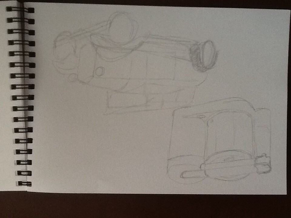 "Maintenant, je vais me poser la question suivante : à quoi ressemblerait l'objet (ou l'animal) si je le voyais parfaitement de face ? De profil ? De dessus ? De dos ? C'est la partie compliquée de cet exercice, mais c'est également ce qui fait le plus progresser. Il n'est pas question de style ou d'aspect puisque le but n'est pas de faire quelque chose de joli, mais d'entraîner ton œil à décomposer instinctivement les volumes et à voir de façon plus analytique. :-)
