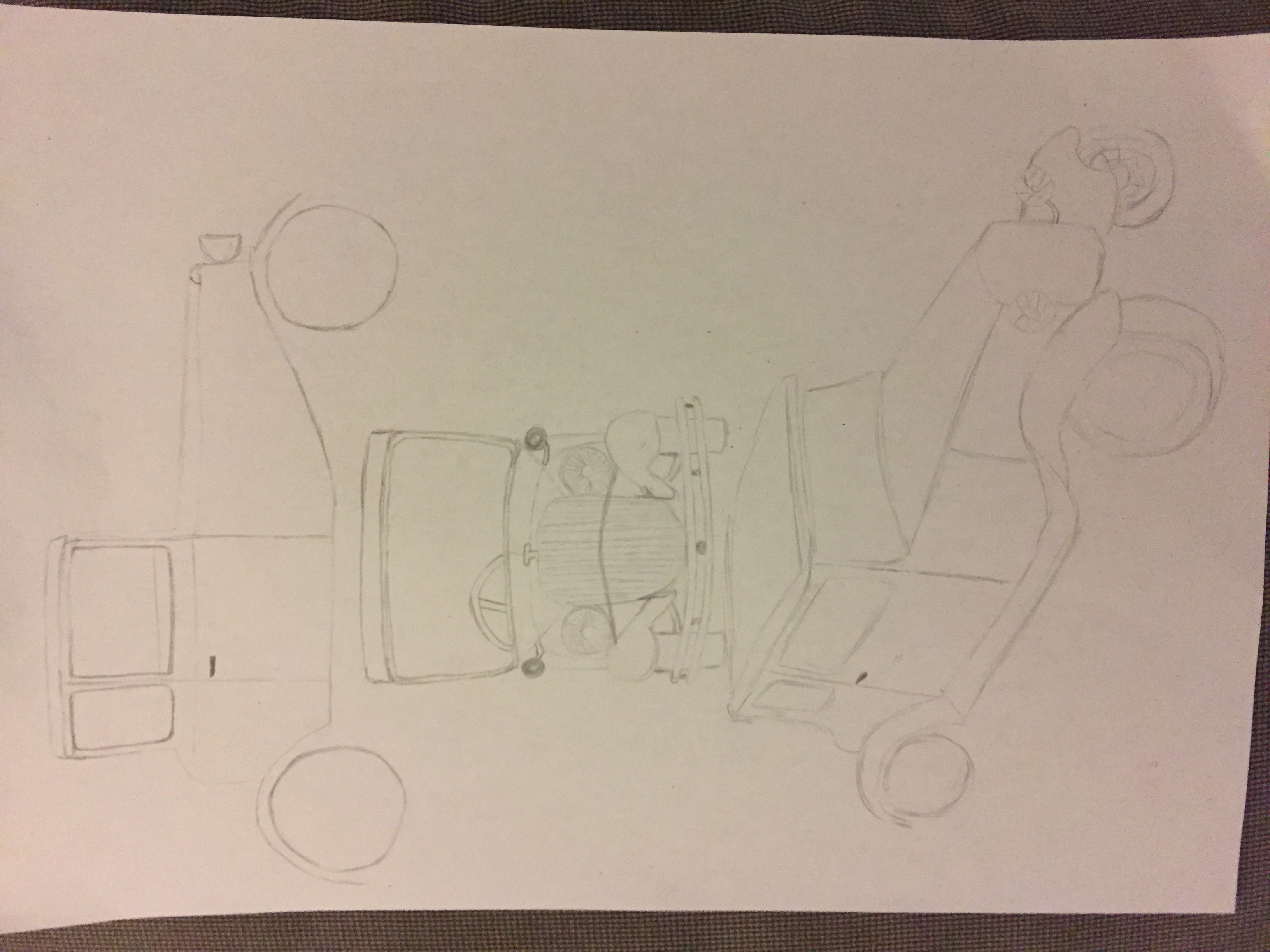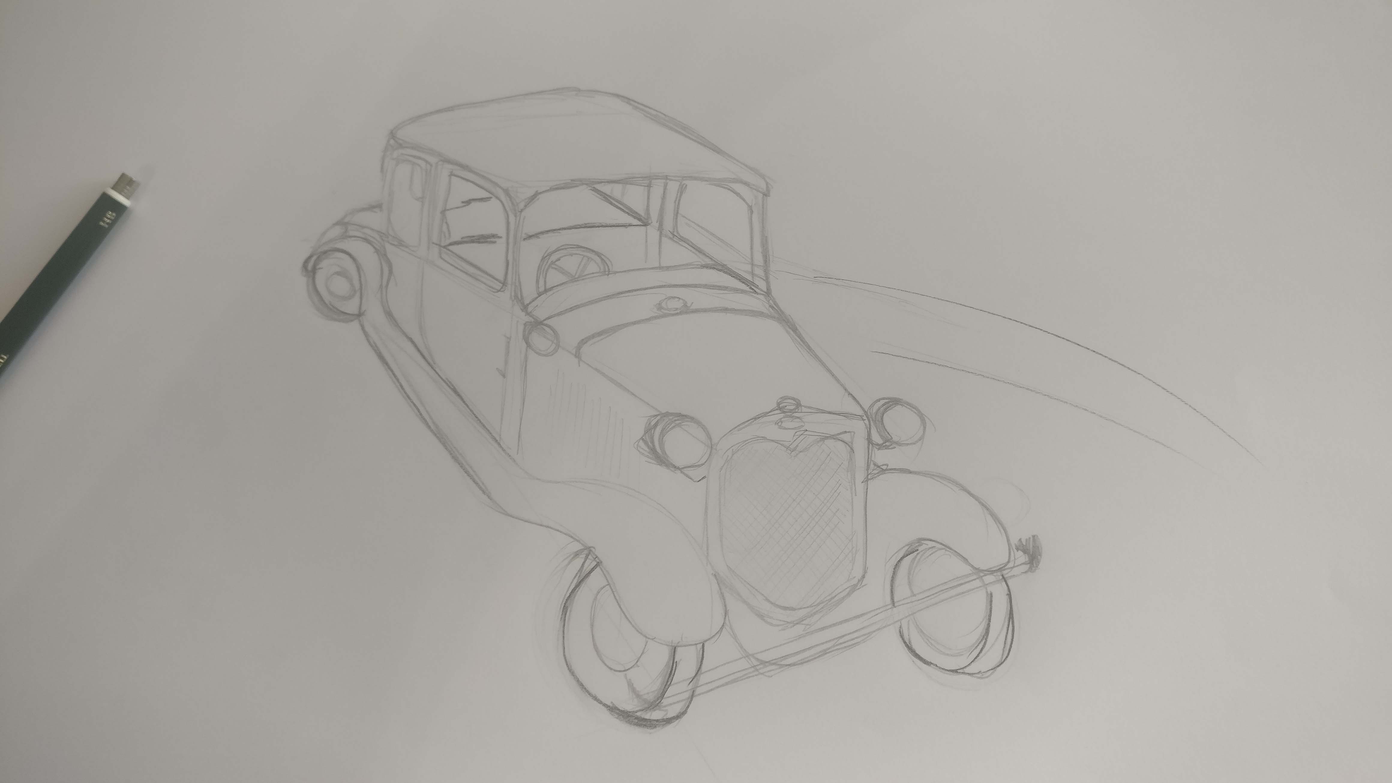 Bien joué pour la voiture, en général sur des planches comme ça on part sur du profil ou des angles de vue sans perspective pour se simplifier la vie. Là partir sur un 3/4 arrière ça demande du courage... Et c'est une des prochaines étapes de la formation :-p