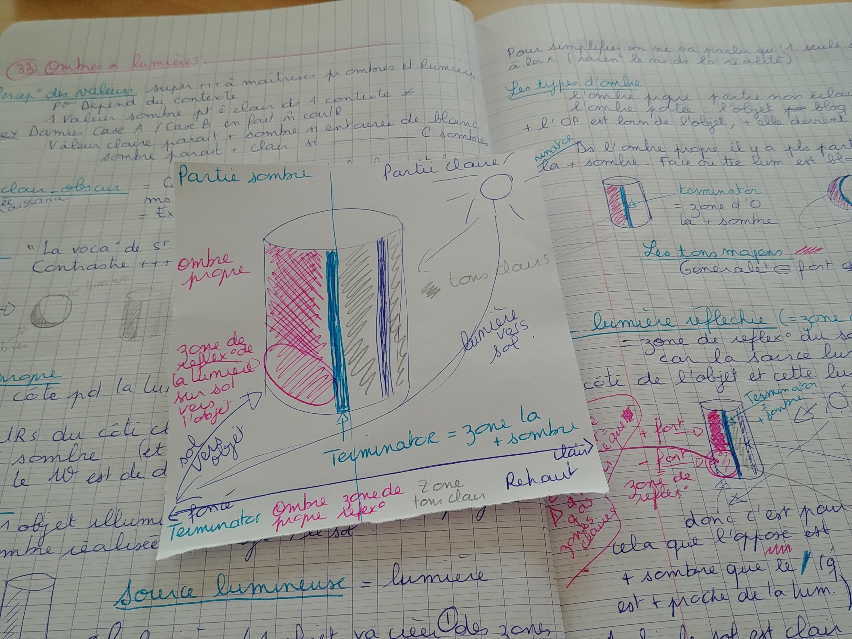 En attendant de poster mon dessin, une photo de mes notes de cours ! J'ai besoin de prendre des notes pour intégrer et là ça part dans tous les sens ! mais j'adore ;-)😆