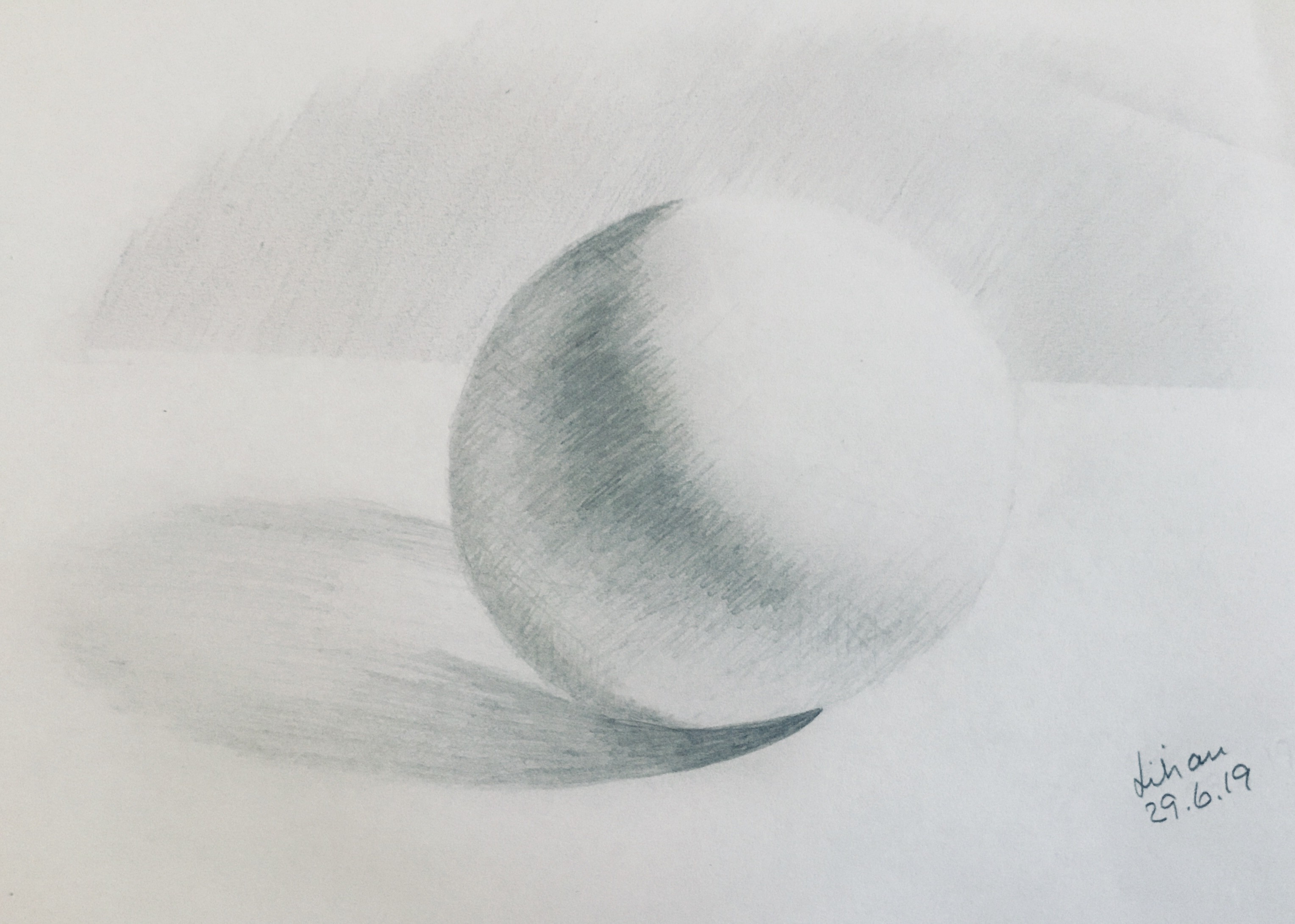 Je comprends ... non, mon intention était de dessiner la boule comme la photo... pas de surface métallique...Maintenant je vois bien les fautes de mon dessin, et j’essaierai de faire mieux 😉😁👍 merci
