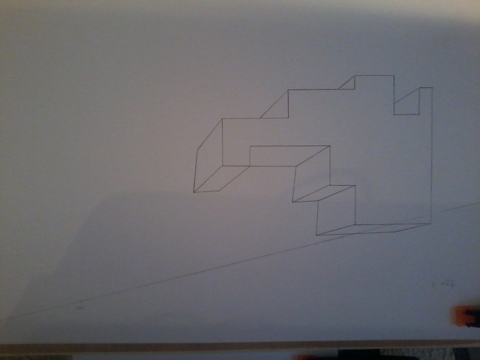 Merci pour cette superbe introduction à la perspective mais ... Je suis un peu resté sur ma faim. donc j'ai un peu exploré et j'ai commencé à m'amuser avec de la perspective à 3 points de fuite. c'est quand même beaucoup plus rigolo. et ça me rappelle mes cours de trait de charpente (une forme de géométrie descriptive pour représenter des pièces complexe dans l'espace sur un plan de dessin).