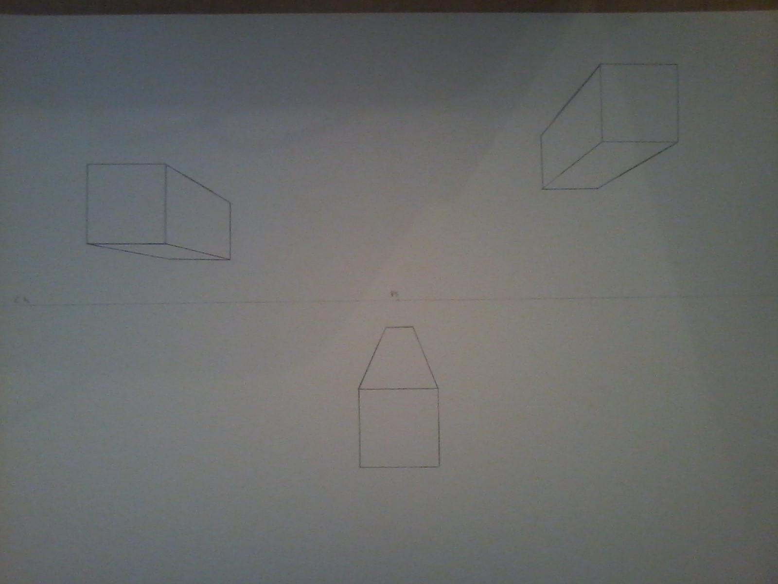 1 : comment représenter un cube parfait dans la perspective. ou bien comment s'assurer que la dimension que je donne dans la profondeur soit choisie ? j'ai fait des essais en résonnant avec une règle de proportion par rapport à la distance au point de fuite mais je ne suis pas sûr que ce soit la bonne piste.