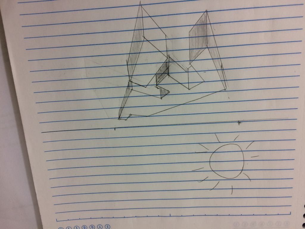 "Si tu n'es pas à l'aise avec ta feuille blanche, essaie ceci : résume les formes compliquées par une seule grande forme. Exemple, un truc tout cabossé peut tenir dans un rectangle pas vrai ?
