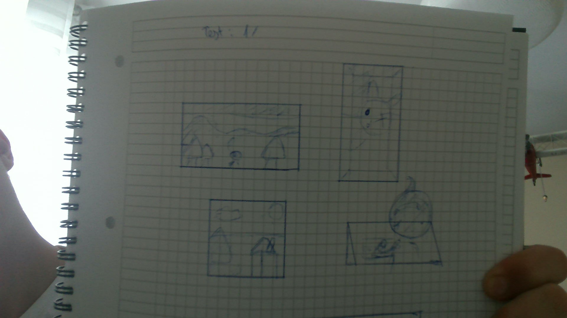 Je n'ai même pas vu ton personnage tout de suite, coincé en pas à droite de l'image. Attention à la disposition trop régulière des éléments aussi. Je te joins une version un peu corrigée rapido des 4 vignettes du coup. A retravailler je pense. Essaye d'imaginer une petite histoire, ça sera plus simple je pense :)