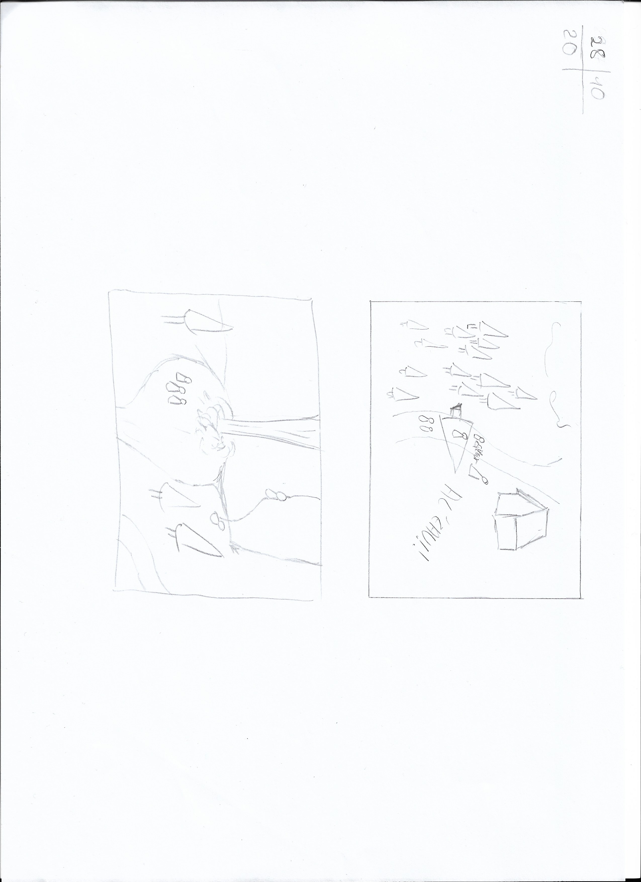C'est pas mal ^^ Paradoxalement, je préfère l'autre pochade que tu as faite. Tout simplement parce qu'elle est bien construite, alors que celle que tu as choisi a de sproblèmes de perspective un peu partout. Je te joins une correction qui sera plus parlante. Pour le coup c'est un problème de construction, mais ça pourrait aussi être un problème de composition. Puis-je te demander pourquoi tu as choisi de cadrer aussi large et loin de "l'action" ? Spontanément j'aurais choisi un cadrage plus proche de l'action justement, je t'ai mis un exemple, mais tu as des taaaaaas de façons de cadrer. C'est aussi pour ça que je préférais ton autre pochade, le point de vue plus large était plus logique et appuyait la hauteur de la descente.