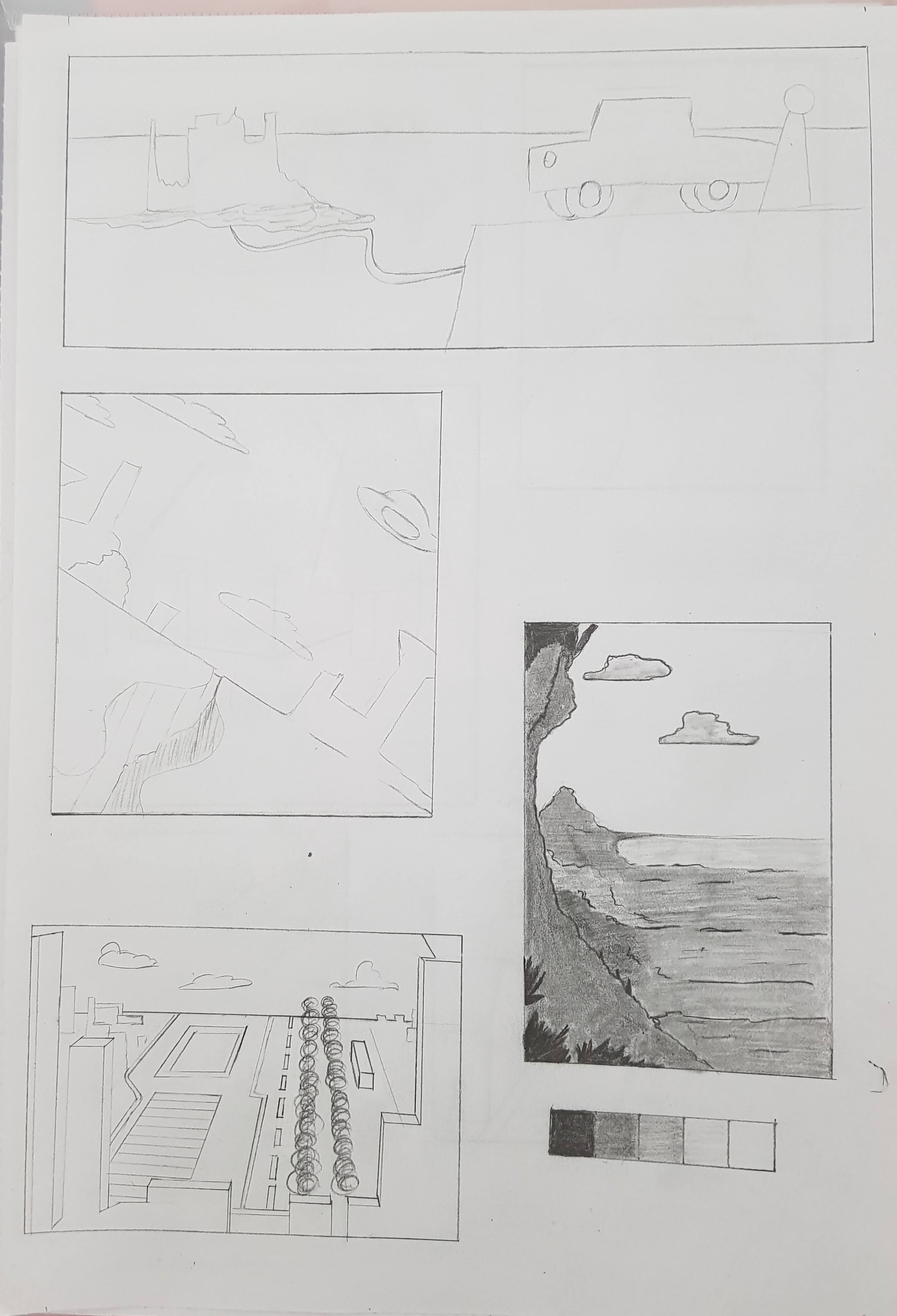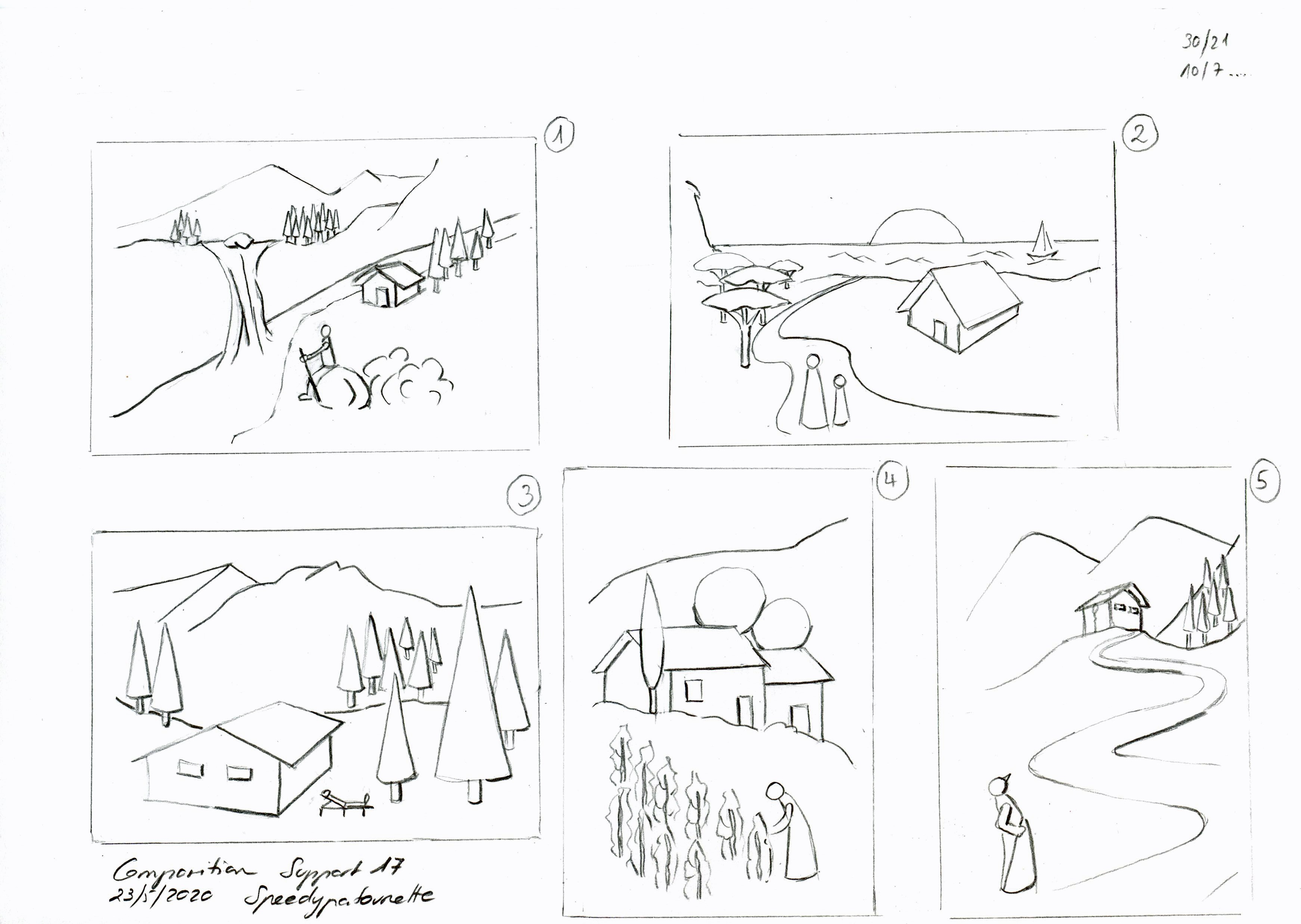 Voici mes petites compositions, il y a une seconde page. C'est toujours super intéressant les conseils donnés, merci beaucoup!