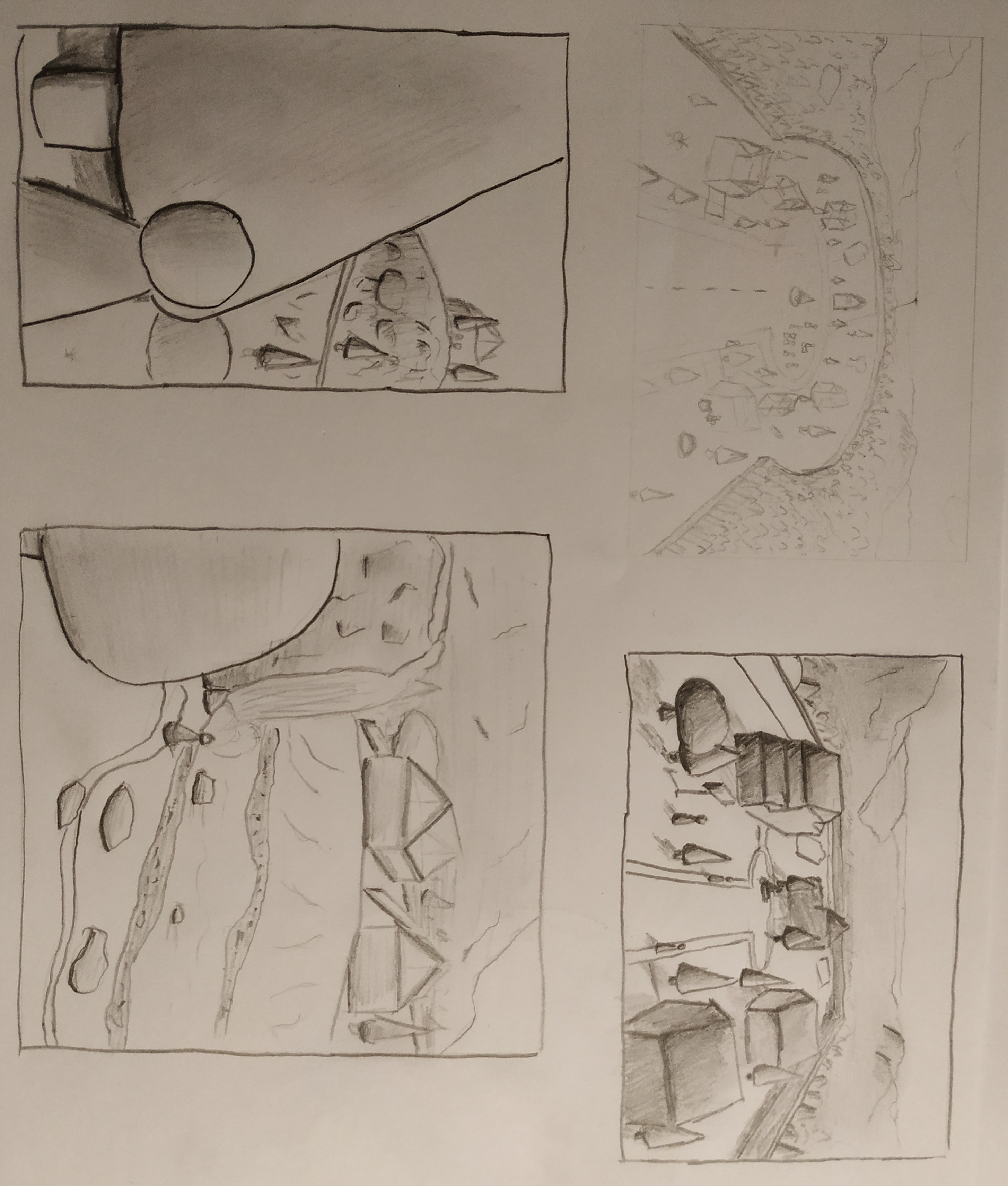 A retravailler donc, c'est principalement la perspective qui casse tes compos, donc prends le temps de bien construire, quitte à commencer avec des boites et des formes simples ^^ Mais il y a de bonnes bases déjà :)