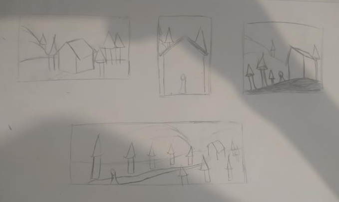 3 maisons, 3 lieux différents et 3 atmosphères différentes. Tu peux garder exactement la même maison que tu as faites, change simplement les cadrage et le décor autour pour qu'on comprenne laquelle est laquelle ^^