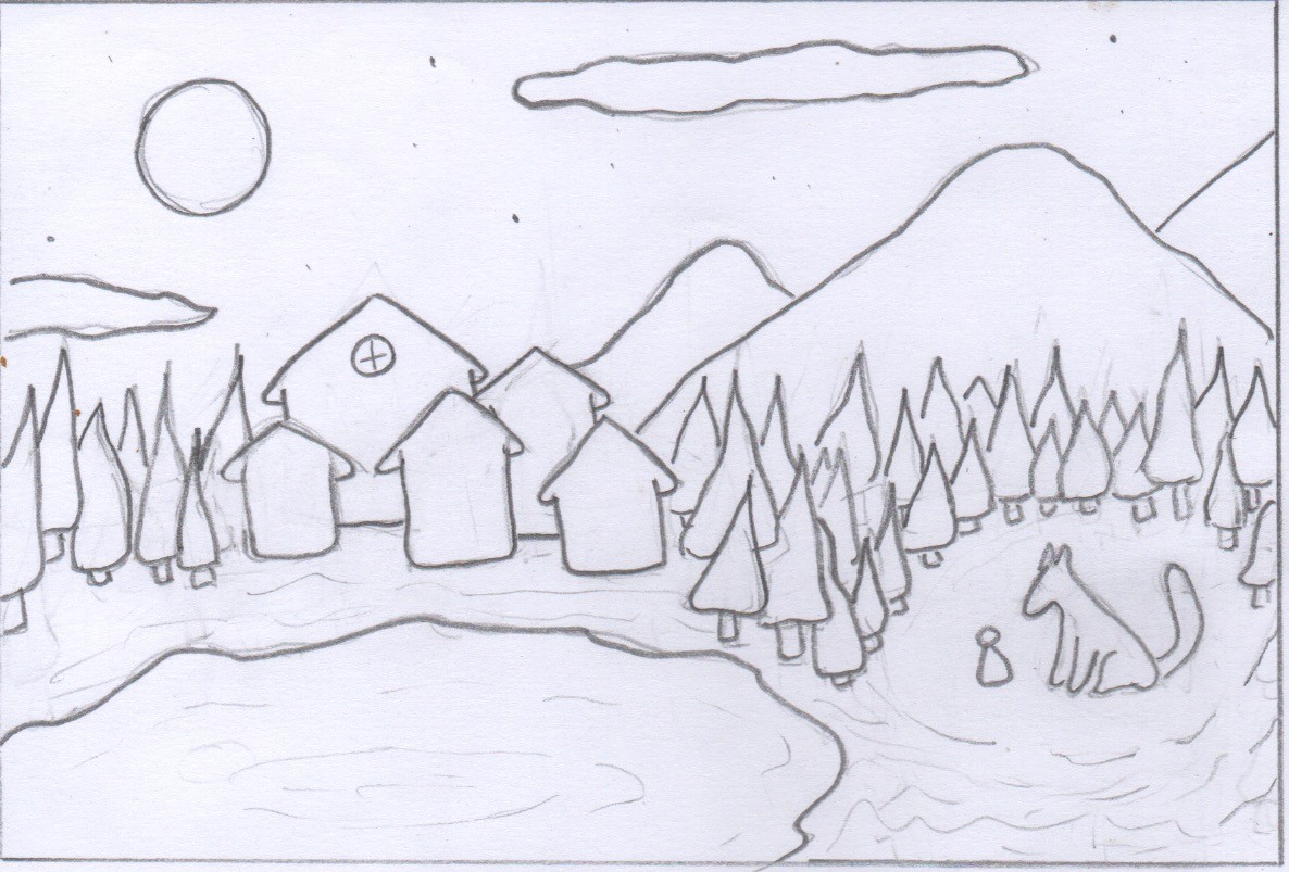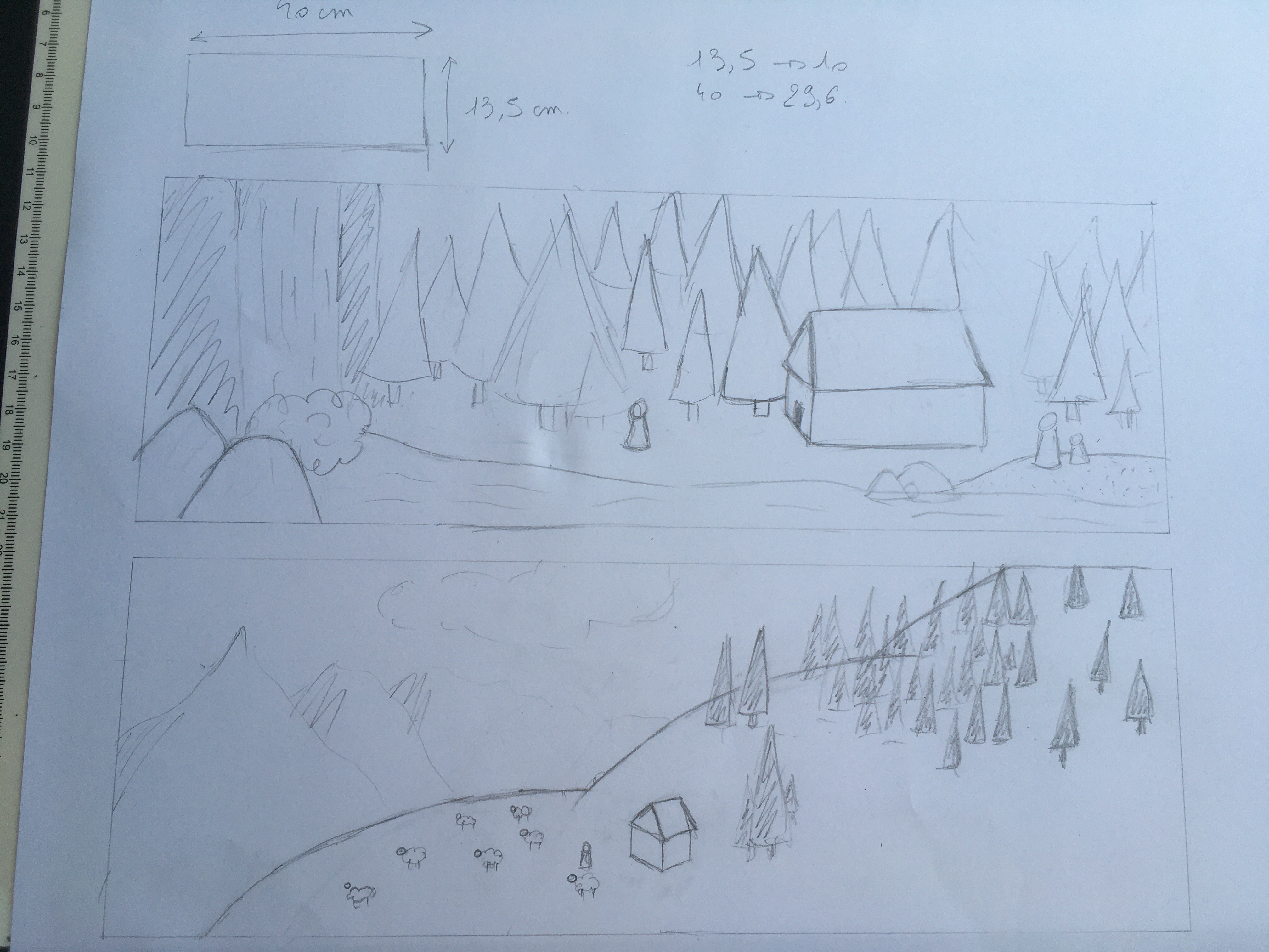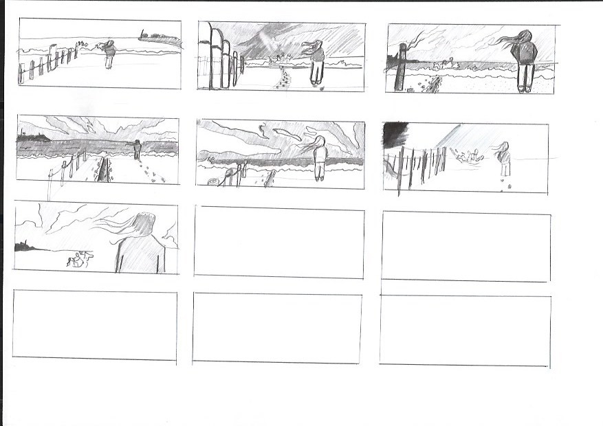je prépare le dossier pour un court-métrage et je dois decider le rapport d'aspect. J'ai choisi donc de préparer des pochades en format panoramique 2.35:1, pour voir qu'est-ce que ça donne la composition.
