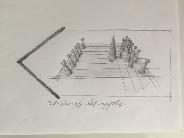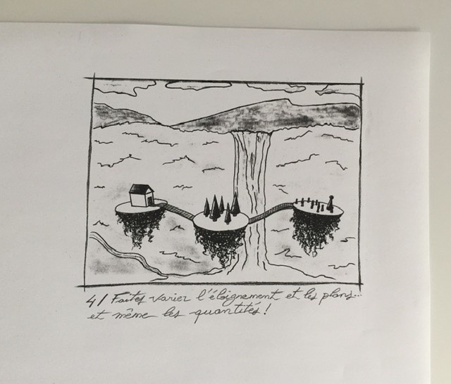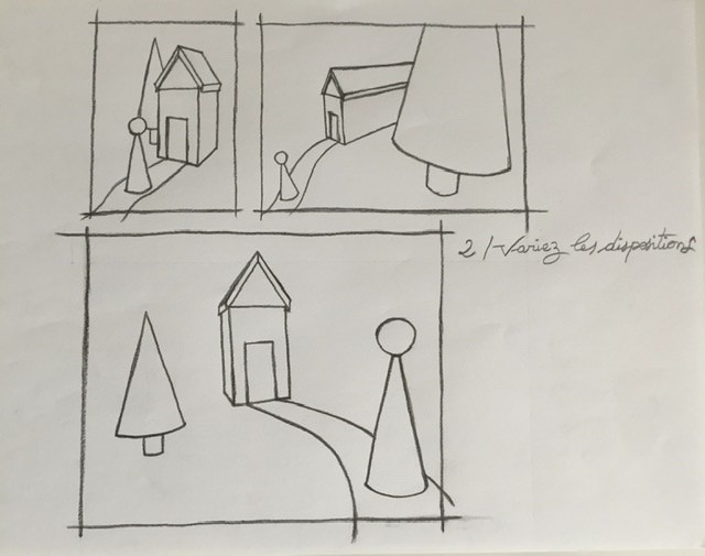 Bonjour, je pensais à quelques chose durant le cours qui pourrait vous servir : plutôt que de calculer chaque points, pourquoi ne pas faire un quadrillage sur la pochade, faire le même quadrillage à l'échelle sur notre feuille finale (exemple faire 15 division en largeur et 10 en hauteur) pour reporter les points simplement et surtout rapidement, quitte à mettre le cadre sous le dessin avec une table lumineuse pour qu'il apparaisse en transparence.