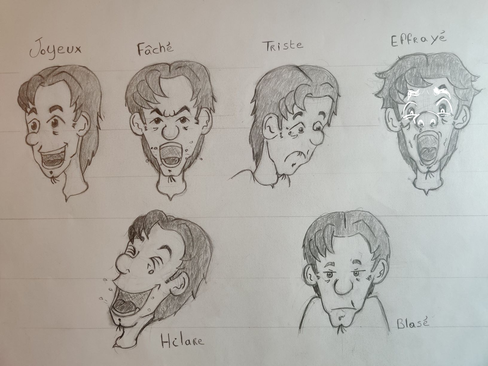 ces émotions sont très réussies et lisibles ! Un bémol peut-être pour la colère et l'ennui, je te joins une petite correction pour accentuer un peu les émotions.