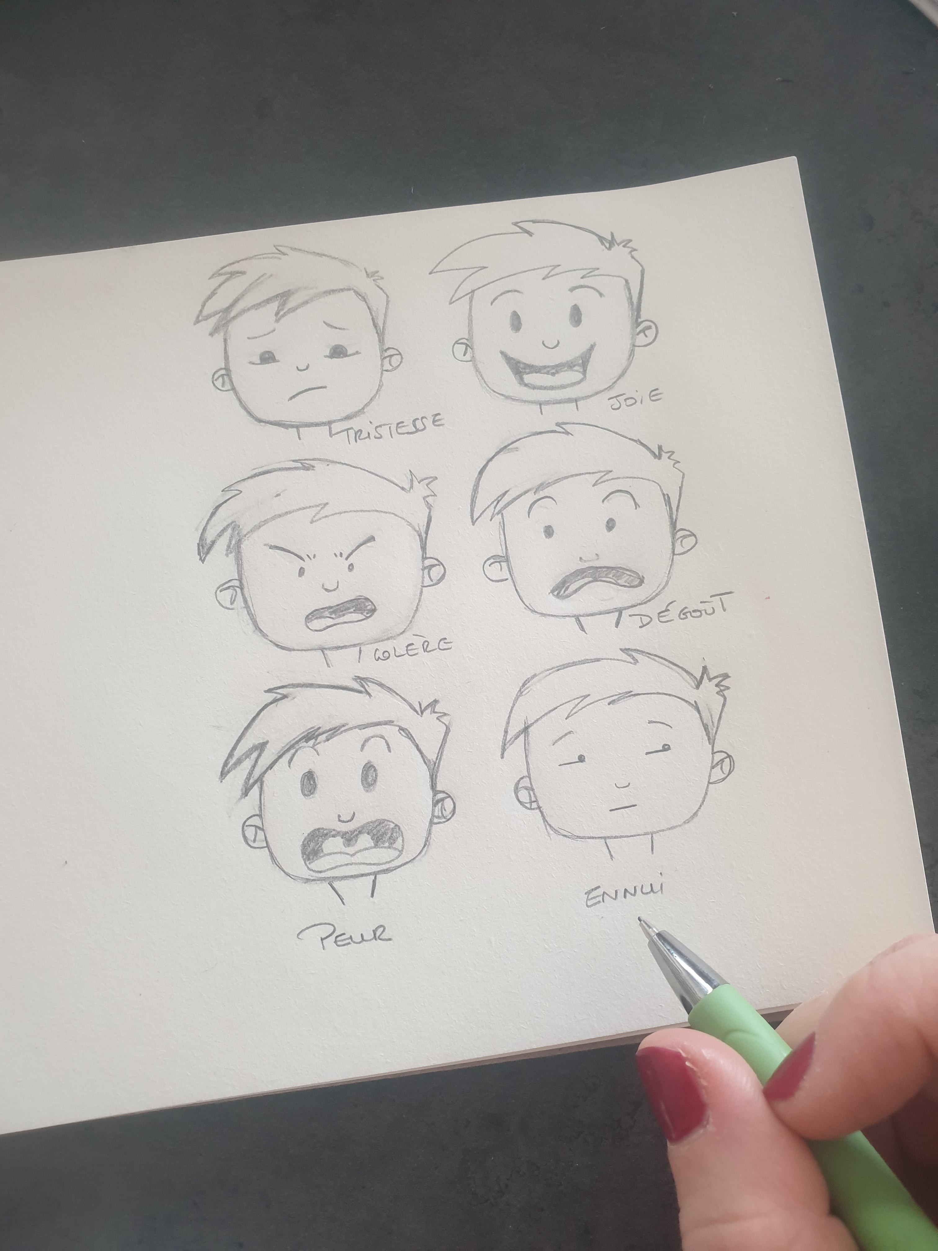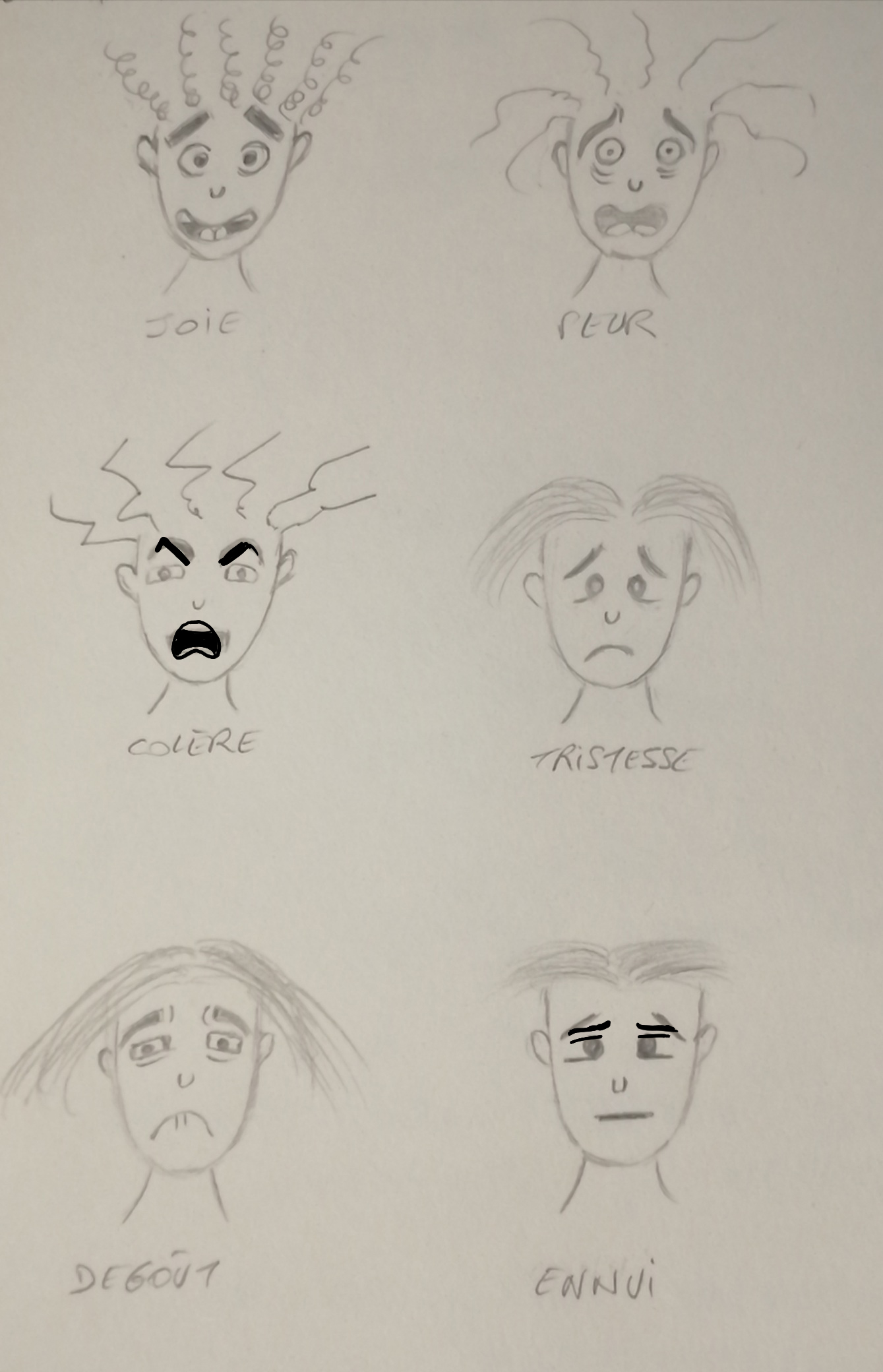 Voici mes essais pour les différentes émotions. Très intéressant encore tout ce que j ai pu apprendre.