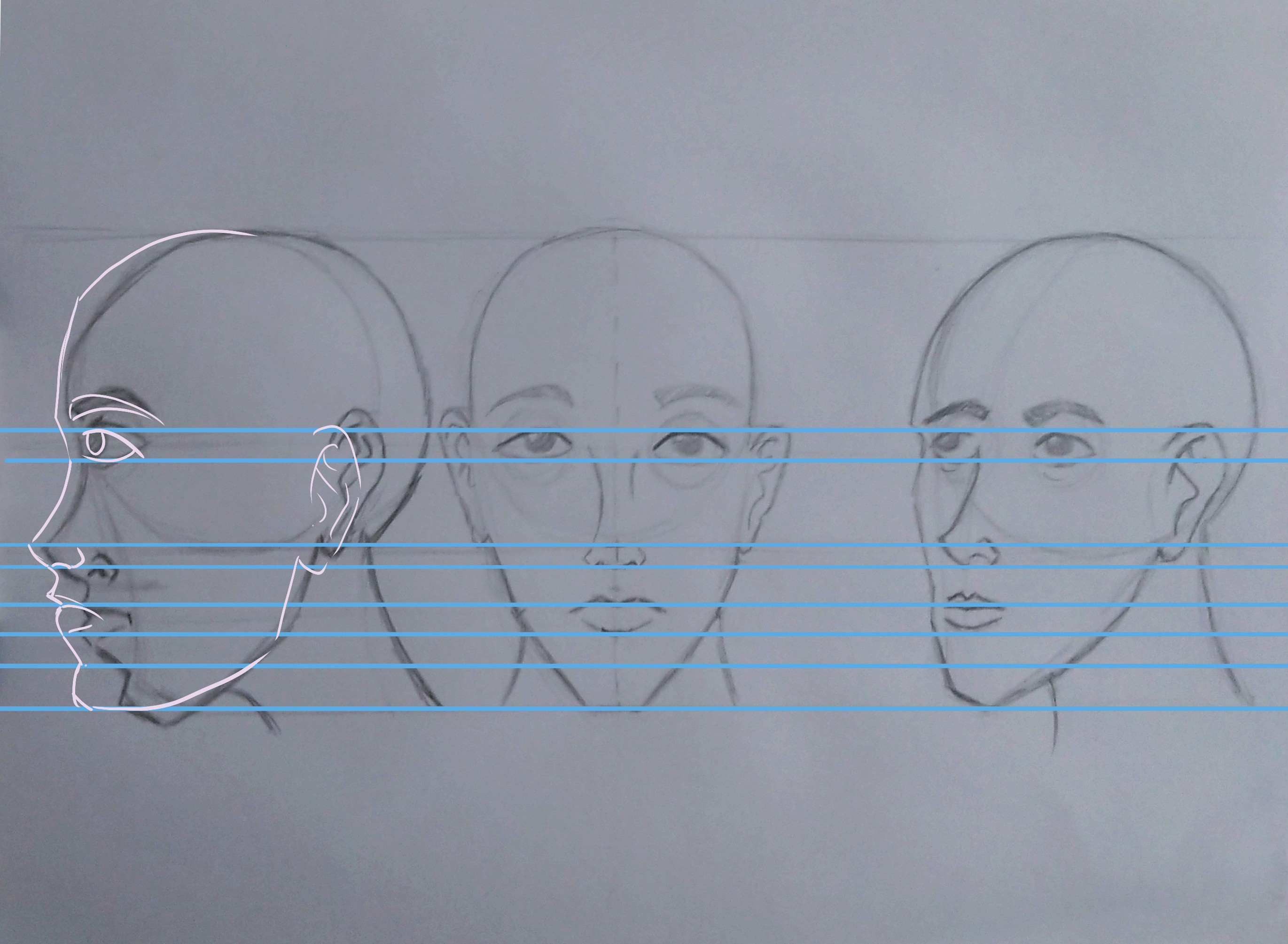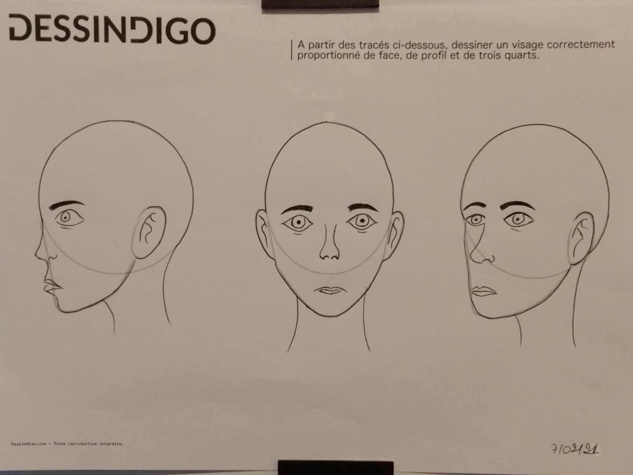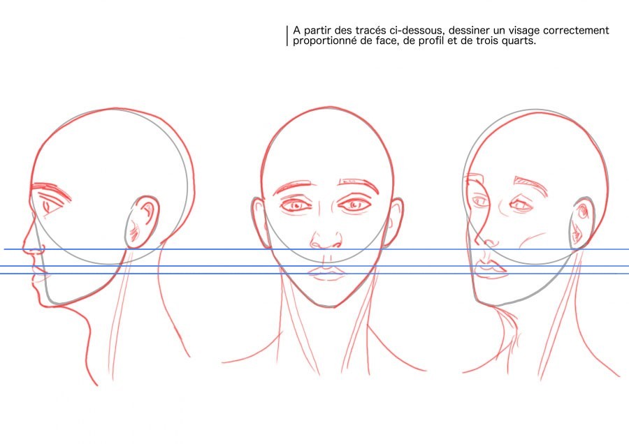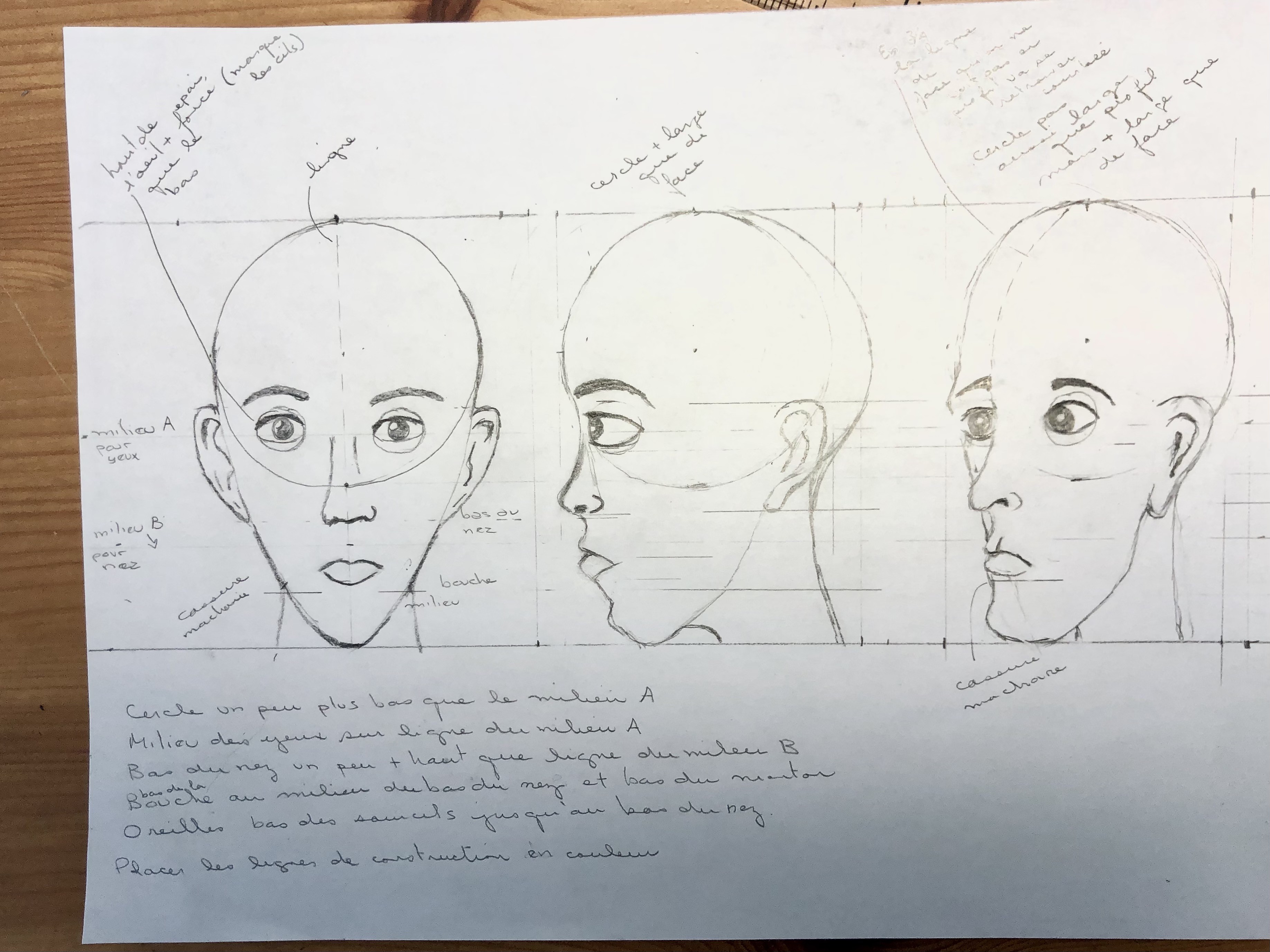 Voici le travail sur les proportions du visage, pas facile.