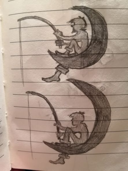 Chavais pas si je voulais faire quelque chose d'archi simple, j'avais eu au début, dans l'idée de profiter pour faire un zentangle, mais chavais pas trop.... mon mari m'a proposé de faire la lune de Méliès, l'affiche du film "voyage sur la lune"....ça date de 1902 😳